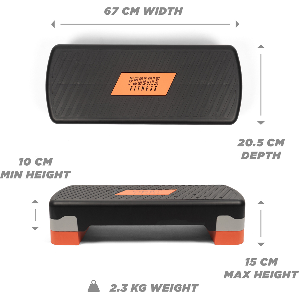 Boost Your Fitness Routine with the Phoenix Fitness Adjustable Stepper Enhance your cardio, strength, and endurance training with the Phoenix Fitness Adjustable Stepper. Perfect for aerobics, step workouts, and general exercise, this sturdy, adjustable step platform is ideal for home use or gym sessions. The Phoenix Fitness Stepper helps you increase your fitness levels with varied heights to suit your needs, making it perfect for all fitness abilities. Key Features Adjustable Height – Easily adjust the step platform to 3 different height levels (10cm, 15cm, and 20cm) for a customizable workout intensity. Sturdy & Durable – Built to withstand regular use, the platform features a non-slip surface for safety during your workouts. Versatile Exercise Tool – Ideal for aerobics, step training, lunges, squats, and general fitness routines, offering a full-body workout. Compact & Portable – Lightweight and easy to store, the Phoenix Fitness Adjustable Stepper is perfect for home use or on-the-go workouts. Non-Slip Surface – Ensures a secure grip during exercises, providing stability for your cardio and strength training routines. What’s Included 1 Adjustable Stepper Platform (3 Height Levels) Transform your fitness journey with the Phoenix Fitness Adjustable Stepper, designed to help you improve cardiovascular health, tone muscles, and increase flexibility. Perfect for anyone looking to take their fitness to the next level!