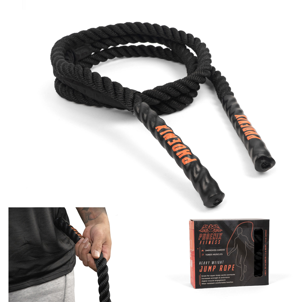 Take your fitness routine to the next level with the Phoenix Fitness Weighted Jump Rope. Designed to enhance your workouts, this 1.13kg weighted rope features ergonomic handles and a durable protective sleeve, making it perfect for both high-intensity indoor and outdoor training. Whether you're looking to boost cardiovascular health, burn calories, or improve muscle coordination, this weighted jump rope offers a challenging and varied workout. Ideal for exercises such as hip twisters, cross-overs, and knees to chest, it's the ultimate tool to push your strength and endurance to new heights. Crafted for those seeking a more intense workout, the Phoenix Fitness Weighted Jump Rope is perfect for anyone aiming to amplify strength, enhance cardio fitness, and add a new challenge to their training routine.