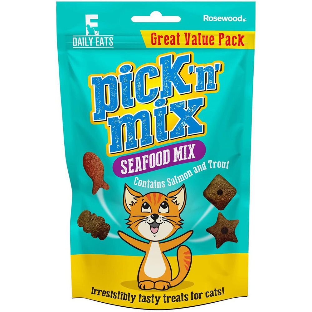Pick n Mix Cat Treats are irresistibly tasty treats for cats in a variety of shapes. Available in a choice of flavours, your cat is sure to love these great value snacks. They even come in a resealable pack to provide ultimate freshness.