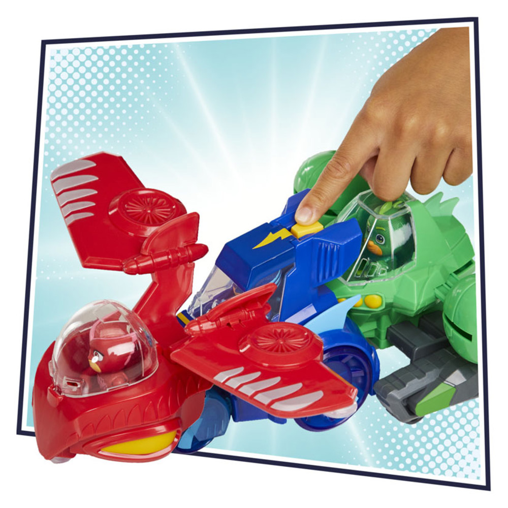 Preschool children's imaginations will soar with the PJ Masks 3-in-1 Combiner Jet toy! This amazing set comes with three super-cool PJ Masks cars that can be used on their own or connected to make an awesome mega jet inspired by the PJ Airjet from the Disney Junior show. The cockpits of the Cat-Car, Owl Glider, and Gekko-Mobile open so that the included Catboy, Owlette, and Gekko action figures can sit inside (both when the vehicles are separate and when they’re combined into the jet). The cars are so easy to move and connect that children aged three and up can be the pilots of their own playtime. Figures are compatible with Hasbro Hero ID-equipped PJ Masks playsets (each sold separately, subject to availability), which recognize and react to Hero ID-compatible PJ Masks figures with lights, sounds, or both. This awesome PJ Masks toy makes a super holiday or birthday present for any pre-schooler or child who loves superhero adventures.