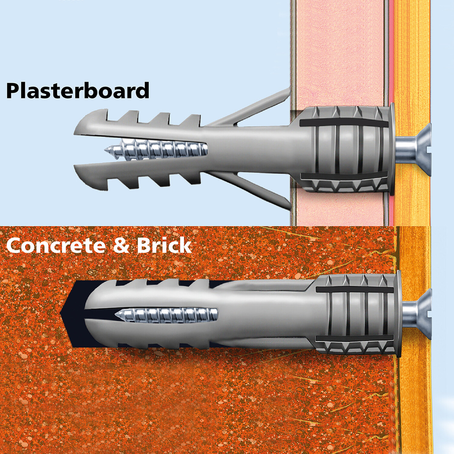 The Plasplugs Mirror Fixing Kit contains all the essential fixings for installing a mirror on both solid and hollow walls. This easy-to-use and convenient kit requires an 8mm drill bit- for hollow walls an HSS drill bit is needed, for solid walls, a masonry drill bit is required. Get your mirror looking fantastic on your wall in no time with this set.