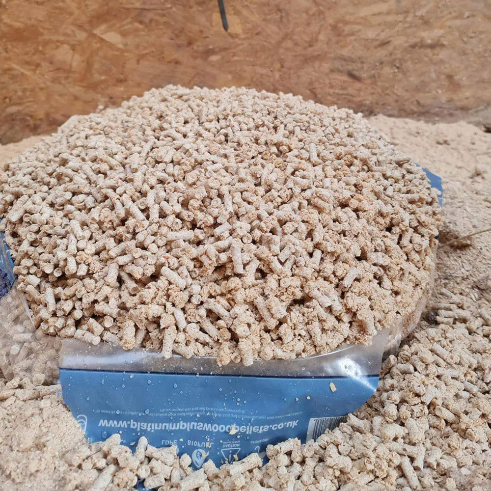Platinum Plus Cat Litter wood pellets are the superior option to keep your house smelling fresh and your cats happy. It's light in colour, making it easy to see when it needs to be changed or when your cat has used it. It's made from 100% premium virgin softwood and has been triple dust extracted, meaning it's easy to clean out and change your litter, without spreading dust over your floors. Wooden cat litter is also highly absorbent. In fact, these wood pellets can absorb up to 380% of their weight in moisture. This will make your litter last longer as the wood will absorb moisture in the area your cat has used, without spreading further into the litter tray. It also has excellent odour control with a fresh pine scent. You can rest assured that you are doing your best for the environment with our cat litter. Platinum Plus's wood cat litter is can be put on a compost heap or in a compost bin and will degrade quickly and efficiently.