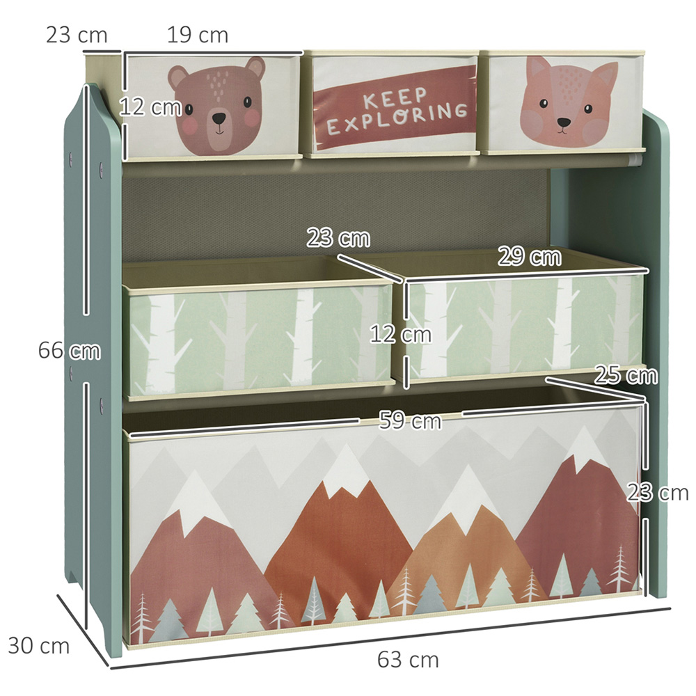 If your child's room is a constant mess, this Playful Haven Green Kids Storage Unit is the perfect choice for you. In a world of toys, books and endless creativity, keeping your child's room organised feels like a daunting task. But fear not, with three small bins, two medium bins and one large bin, scattered toys have a designated home, and books are neatly stored on shelves. Sturdy and durable, made from MDF, this unit keeps its shape when not in use. Also, the smooth painted surface is easy to wipe clean, ensuring hassle-free maintenance. A piece where organisation meets imagination, it's a stylish and practical addition to any space.