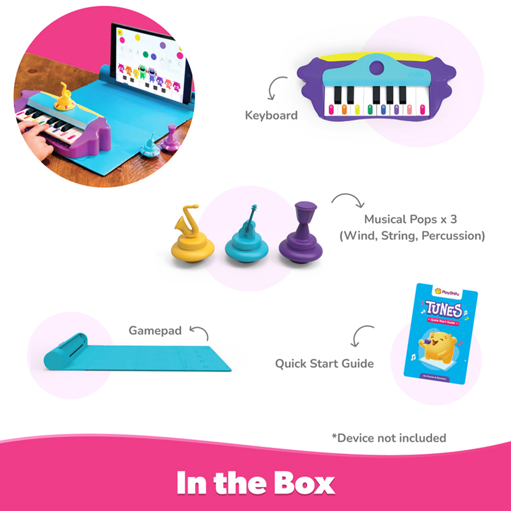 This innovative keyboard transforms learning piano into an exciting, interactive adventure for children aged 5 to 10. By combining a physical keyboard with an engaging augmented reality app (requires a compatible tablet or smartphone), Tunes makes mastering musical concepts fun. Children follow interactive lessons that teach notes, rhythm, and technique, learning to play over 50 popular songs and jingles step-by-step. The PlayShifu Tunes Piano Tutor uses visual cues on the screen, guided by the app, to help kids hit the right notes at the right time. This gamified approach keeps young learners motivated and builds their confidence as they progress from basic tunes to more complex melodies. PlayShifu Tunes – The Smart Piano Tutor helps develop musicality, improves hand-eye coordination, and fosters a love for music through engaging play. Requires tablet/smartphone and free Plugo App (Check PlayShifu website for specific device/OS requirements). Device not included.