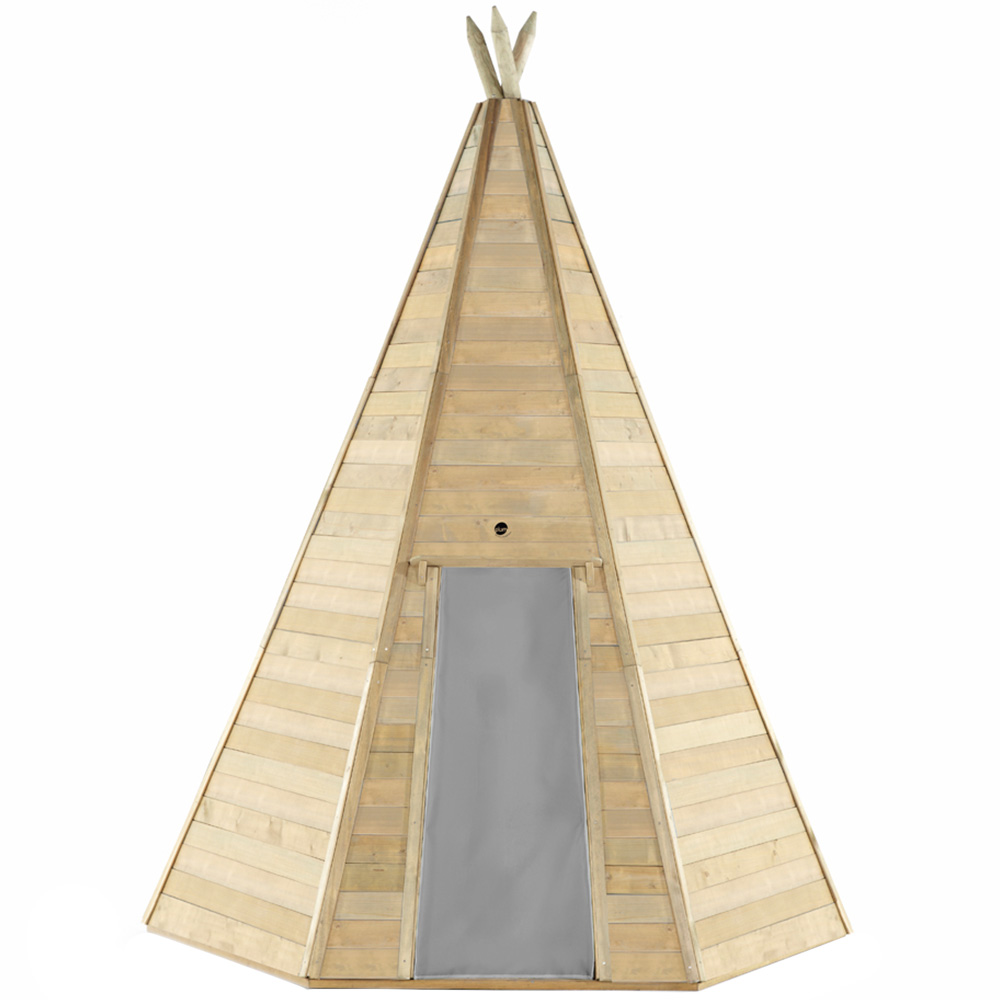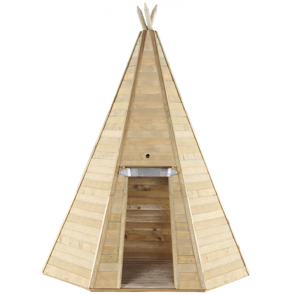 Encourage outdoor play with the Plum Play Grand Teepee Wooden Hideaway. Discover the perfect shaded spot in your garden where kids can immerse themselves in creative play. They can create secret dens, share cosy hideouts with friends, or simply unwind in their little haven of cushions. On rainy days, these playhouses provide a sheltered retreat where children can snuggle up with a book, relax, and let the hours slip by. The fabric door is secured with hook and loop fastener, creating a snug corner for the little ones to enjoy, and even parents can join in the fun. The tent offers a unique opportunity for the whole family to enjoy camping adventures right in the comfort of their garden. It is a blank canvas, allowing kids to unleash their creativity and personalise their play space. Crafted from sustainably sourced FSC-certified wood, the playhouse can remain neutral or be transformed into unique garden hideaways through painting and stencilling.