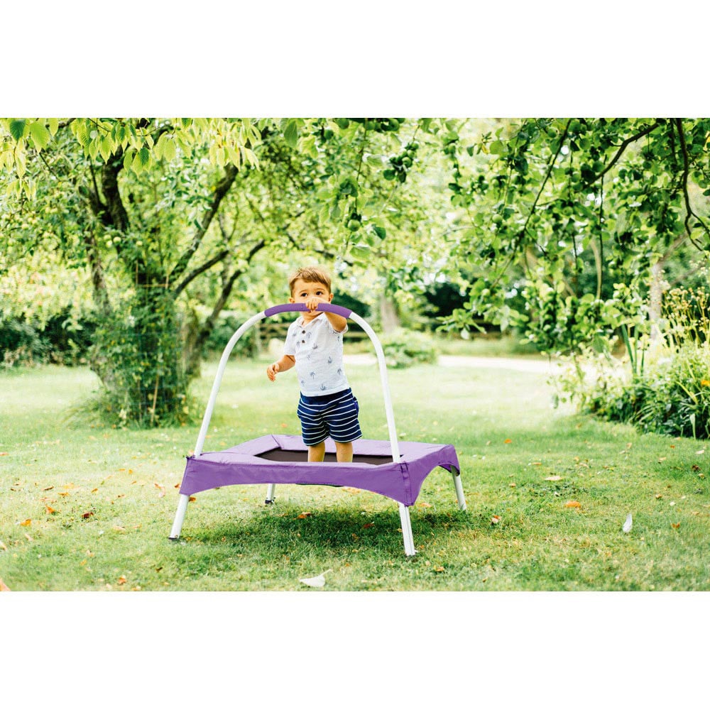 Take your toddler on a fun journey with this Plum Play Purple Square Junior Bouncer. This bouncer allows toddlers to safely bounce and build up their confidence while helping improve their balance and coordination. It has a steel frame and is powder-coated for additional protection from rust. With a new soft-grip handle to aid stability, it also features spring-free construction utilising woven elastic cords to attach the jumping mat for a safer and softer bounce. It also comes with thick foam padding around the frame.