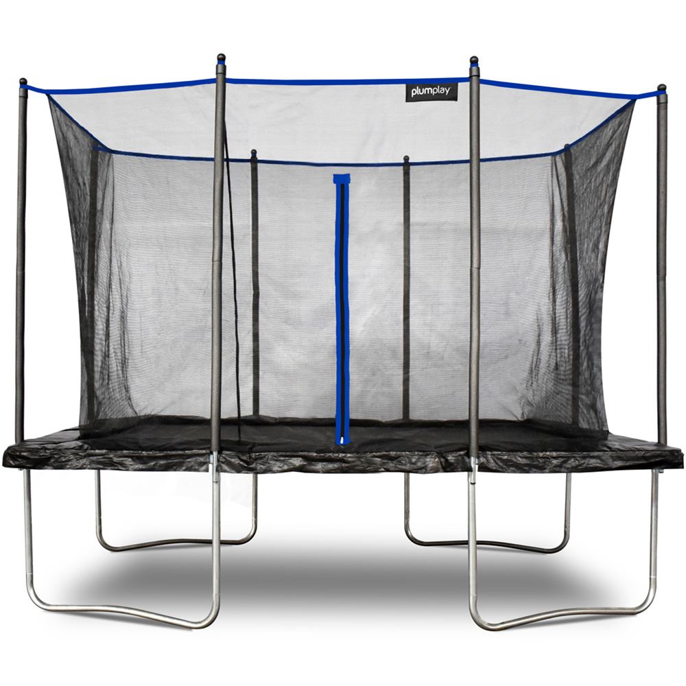 Elevate outdoor play with the Plum Play Springsafe 10 x 8ft Rectangular Trampoline with Safety Enclosure Net, a favourite among professionals and enthusiasts alike. Its uniquely designed rectangular bounce space ensures maximum play within a smaller surface area. The trampoline is equipped with innovative Springsafe technology, providing enhanced protection for jumpers against the springs and frame parts. Additionally, a robust weather-protected safety pad adds an extra layer of security, making bouncing safer than ever. The trampoline and enclosure are meticulously engineered to deliver superb durability and exceptional bounce performance. For added longevity, the thick steel frame is fully galvanized to protect against rust, and the 76 springs are coated with zinc, ensuring a long-lasting and enjoyable bouncing experience for all users.