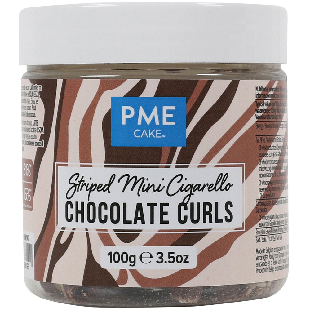 These delicious PME Striped Mini Cigarello Chocolate Curls are perfect for decorating cakes and cupcakes. But why limit yourself to baked goods? You can try them on hot chocolate or even a cappuccino. Suitable for desserts and more, this is the ideal addition to any baker's cupboard.