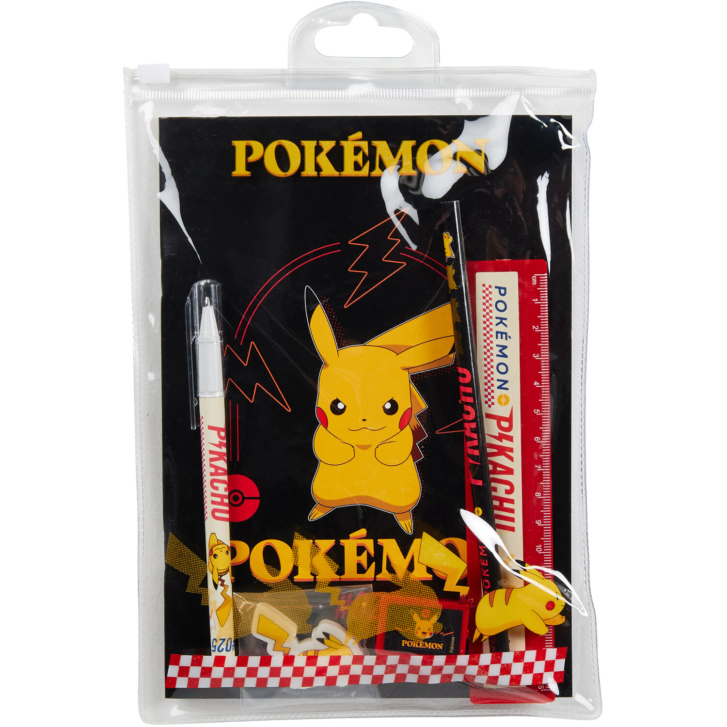 This incredible Pokemon Stationery Set is excellent for home, work or school. It contains a notebook, pencil, pen, ruler, eraser and sharpener, all featuring a fun Pikachu design. Packaged inside a handy reusable zip lock wallet so your stationery can be transported with ease. This awesome set would make the ideal gift for any Pokemon fan.