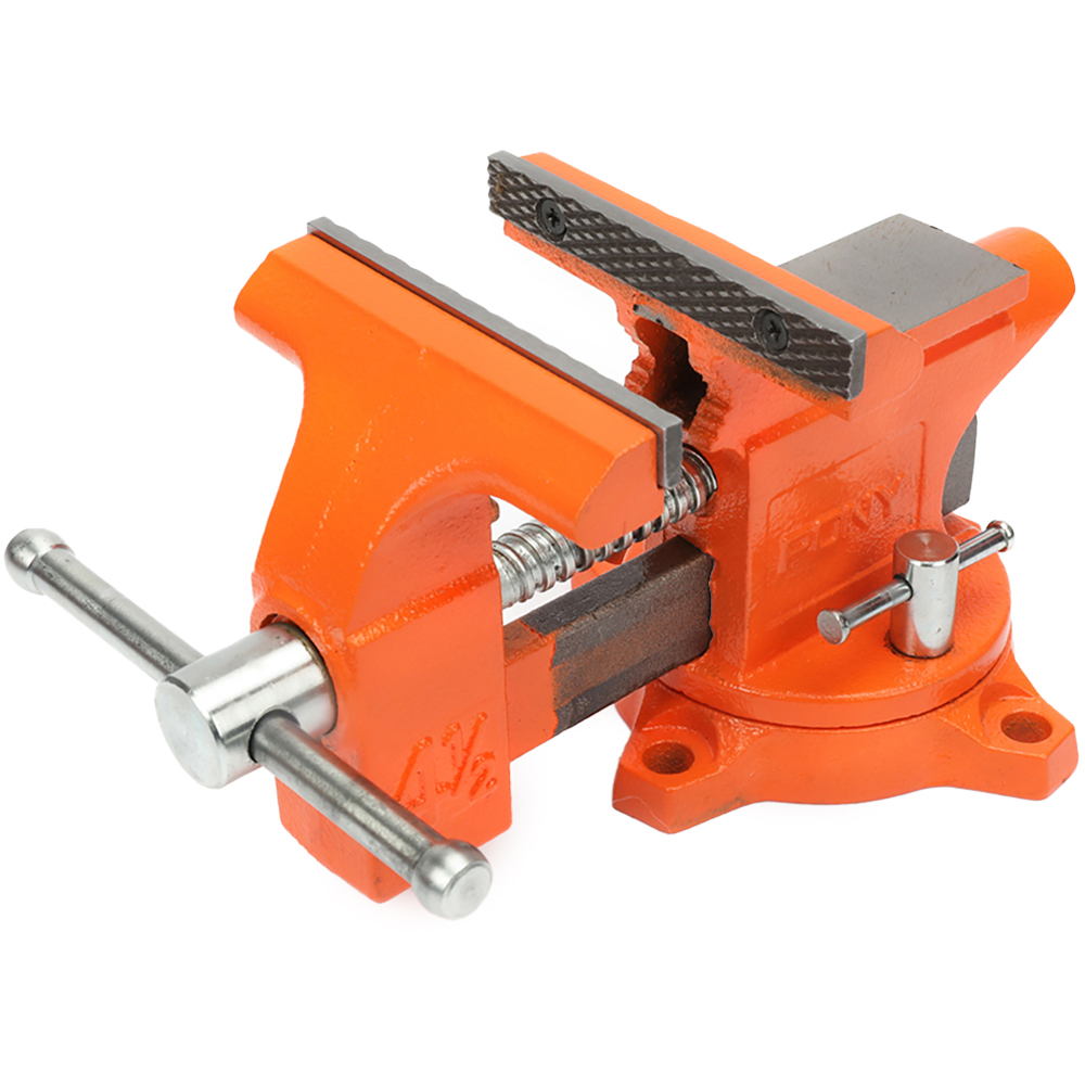 The Pony light-duty bench vice with a swivel base is ideal for light-duty home, shop, and professional use. These vice feature rugged strength you'd usually have to spend more for, with square four-hole swivel bases, sturdy steel jaw faces, ground and polished anvils, permanent pipe jaws, forming horns, and 180 degrees of swivel.