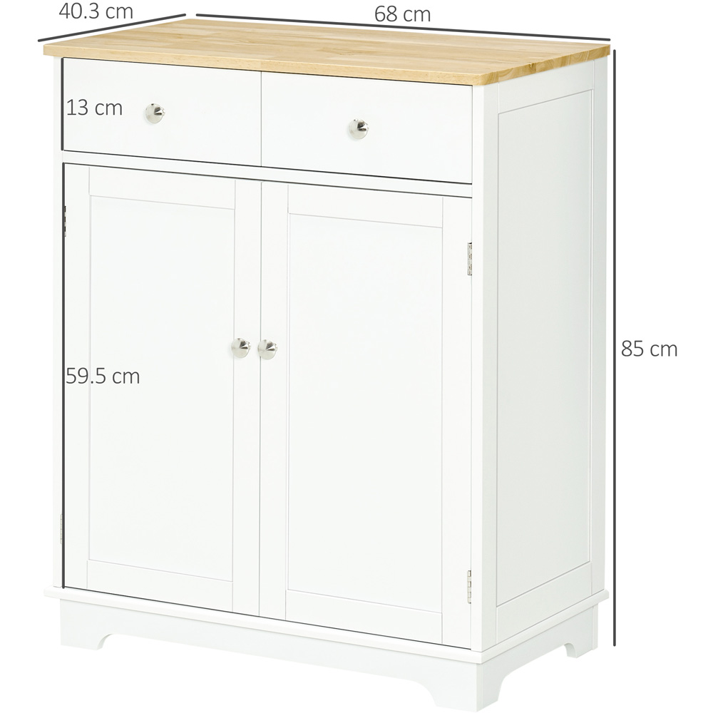 Infuse elegance and easy organisation into your everyday routine with the Portland 2 Door 2 Drawer White Kitchen Cabinet. This cabinet is made of durable rubberwood and MDF, ensuring easy cleaning and long-lasting use. With two spacious drawers and a cabinet featuring an adjustable shelf, you'll have endless storage possibilities. Plus, the polished surfaces and smooth table corners make it safe and kid-friendly. You can rest easy knowing it comes with an anti-tipping design and can be securely fixed to the wall. The shelves can be locked in place at three fixed levels, allowing easy customization to suit your needs. The two large drawers provide ample storage space for utensils or other items, while the fully-openable doors offer a seamless storing experience. Get your hands on this versatile kitchen cabinet today.