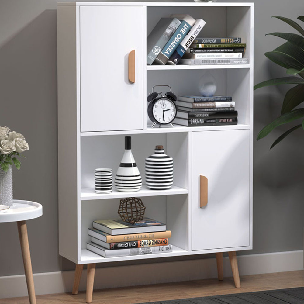 Make a practical addition to your space with the Portland White Sideboard Freestanding Bookshelf. Compact and perfectly sized, the unit makes a great space-saver for any home, apartment or office. Finished in white, it brightens up any room and blends beautifully with all décor styles. Spacious with ample storage space, the unit has four open shelves and two cupboards (both with middle shelves) for plenty of storage and display space. Plus, for safety in every home, it has anti-tilt straps to prevent it from falling over and causing accidents. Size: 123 x 80 x 23.5cm