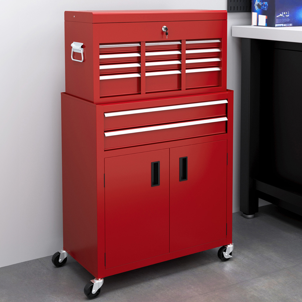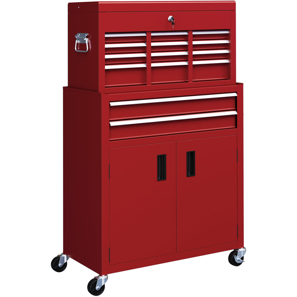 Portland 2 Door 6 Drawer Red Chest and Tool Storage Cabinet Set