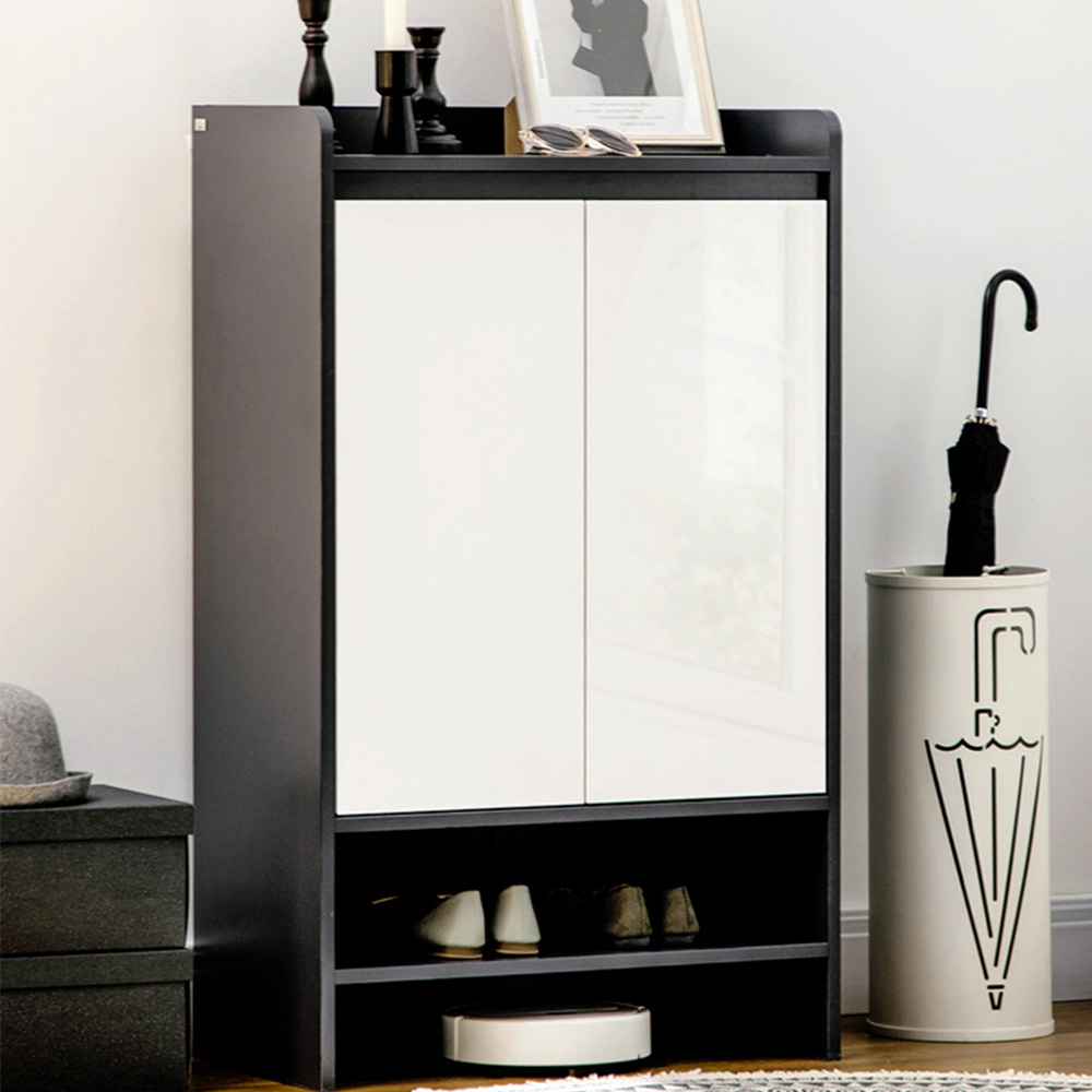Organise your shoes and tidy your space with this Portland Grey and White 2 Door Shoe Cabinet. An indispensable piece of furniture for every family, it sports a grey and white glossy and matte combination look to add style to your interior. It comes with five shelves and one tabletop that offer ample storage space. The three-level adjustable shelves in the shoe cupboard allow you to adjust its size according to your needs and enjoy a blend of style and functionality.
