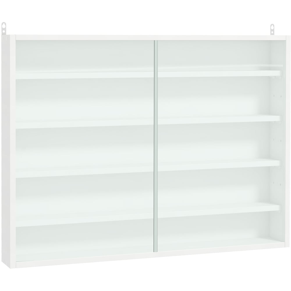 Transform your space with this versatile Portland 2 Door 5 Shelf White Wall Cabinet, featuring four adjustable shelves that offer seven unique height positions, perfect for accommodating various sized items. The elegant glass doors slide open effortlessly, providing easy access to your belongings while protecting them from dust and damage. Crafted with a sturdy particle board frame, this cabinet ensures reliable and robust support for all your displays. Ideal for smaller areas, it can be wall-mounted to save valuable floor space. Assembly is required for a fully customised setup.