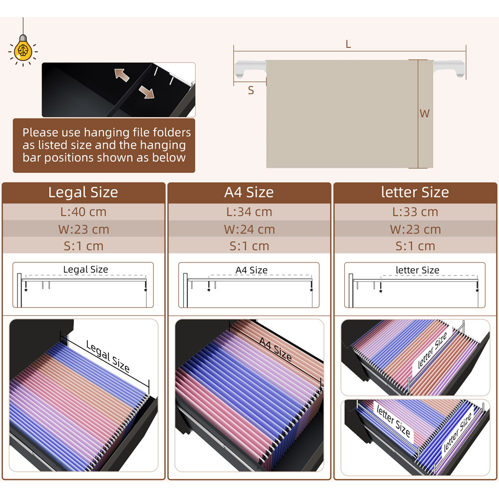 Keep your important paperwork organised with this Portland 2-Drawer Black Vertical Filing Cabinet. Spacious in size, this unit features two small drawers perfect for paperwork and other office supplies. It also comes with an adjustable bar for hanging letters, A4 and legal-sized files. Ensuring maximum safety, the unit is finished with a lock to keep everything safely secure when you're away. Tough and solid, the sturdy unit is sure to last for a long time. This cabinet is supplied with two keys.