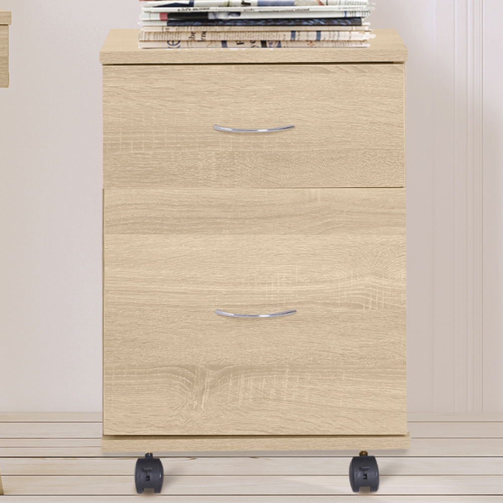Ensure a perfect solution for all your office storage needs with the Portland 2-drawer oak File Cabinet. With this cabinet, you'll have everything you need at your fingertips, allowing you to be more productive and efficient. This two-drawer filing cabinet is ideal for small office spaces that lack storage. From important documents to office supplies like staplers, scissors, and printer paper, this cabinet has you covered. The mobility of this file cabinet allows you to keep it close while you work and easily move it to a corner when the day is done. With two brakes, you can ensure that it stays in place wherever you need it.