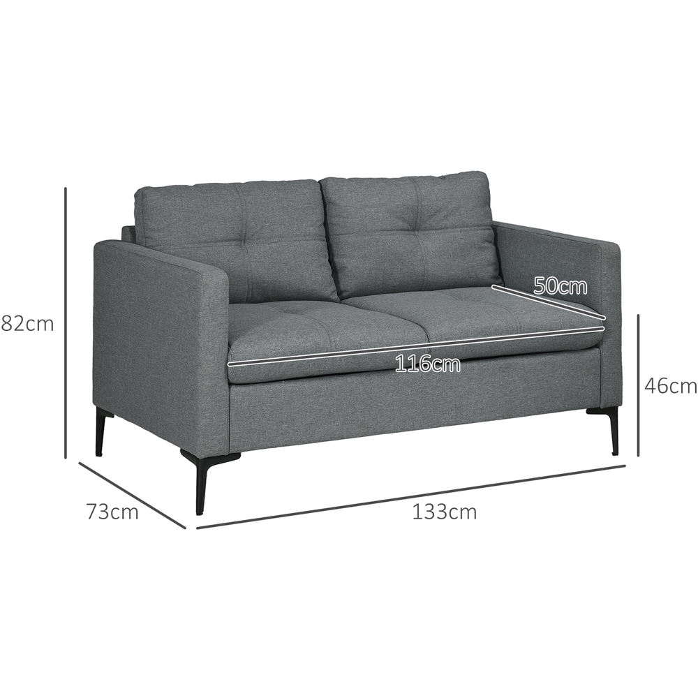 Make an impressive addition to your home decor with the Portland 2 Seater Dark Grey Linen Loveseat Sofa. It is upholstered using soft linen fabric with cosy sponge-padding and 'S' springs that make the seats and backrests more comfortable. It is crafted using a solid steel frame with tapered steel legs for stability and support. This 133cm sofa is spacious enough to spend time with friends and loved ones and goes well with all types of modern and traditional interior spaces.