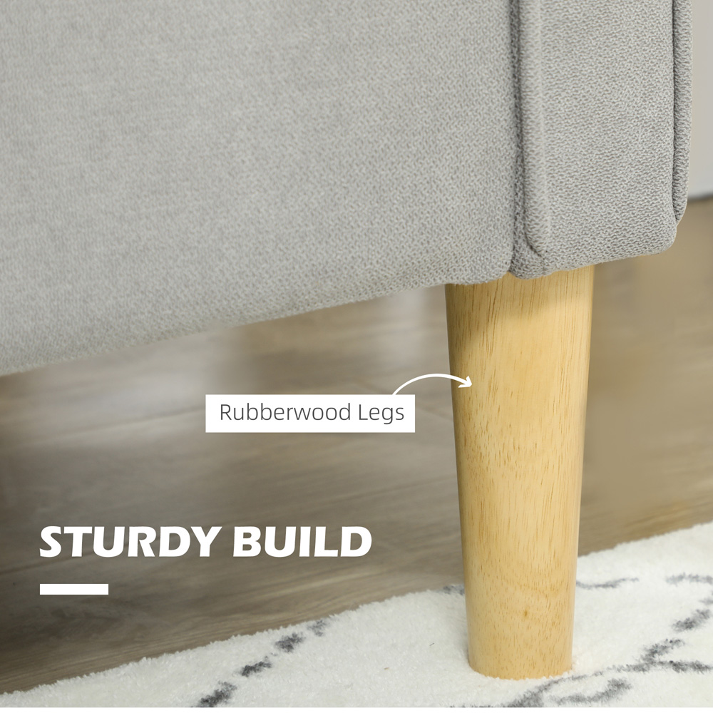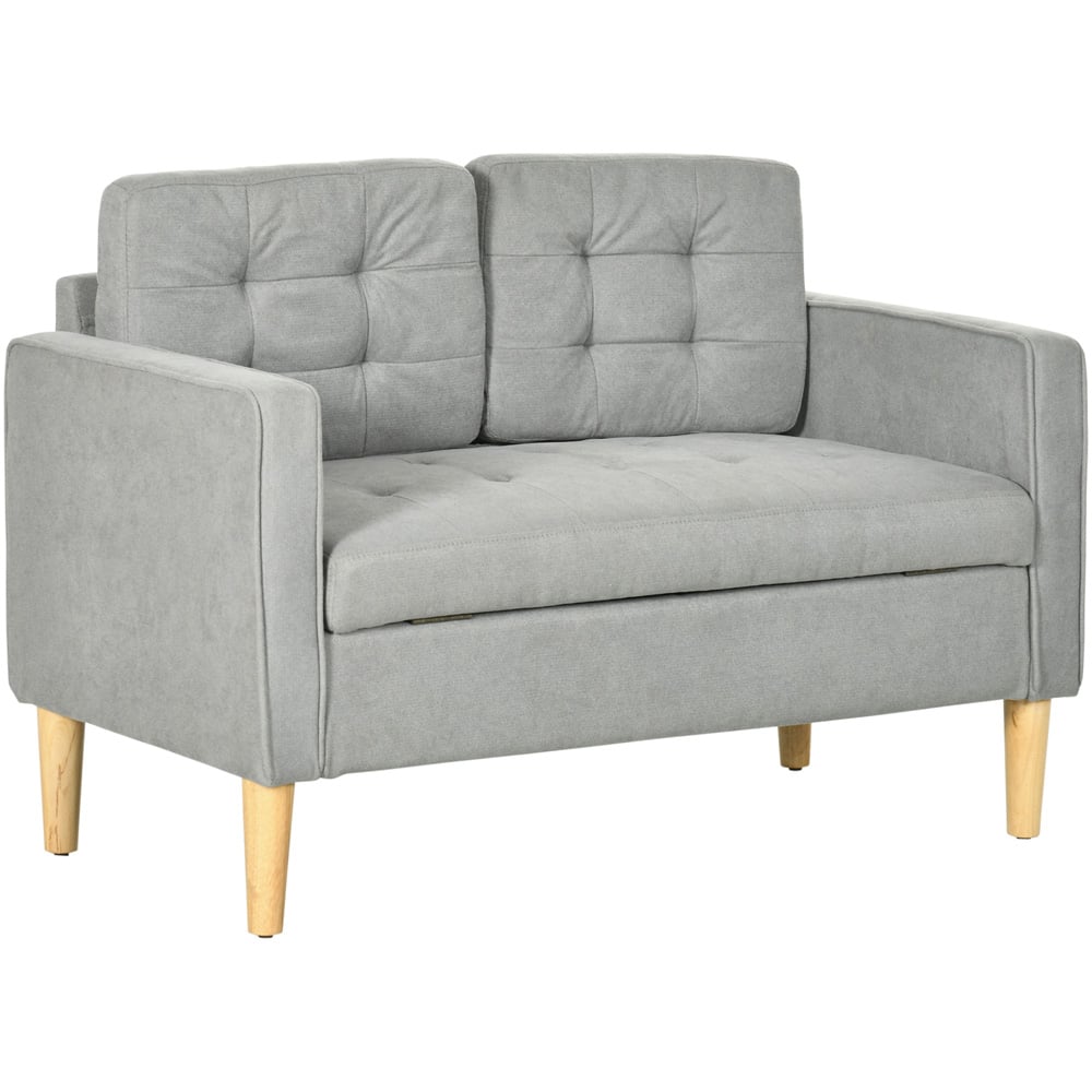 Add a modern touch to your living area with the Portland Modern 2 Seater Light Grey Sofa with Hidden Storage. This 117cm tufted cotton couch, compact loveseat sofa with wood legs in grey will elevate the ambience of your living space. It has an under-seat compartment to keep your living space clean and tidy. Sewn-on handle to lift up easily. This two-seater sofa features a compact design that is perfect for smaller spaces, such as city-living flats, bedrooms and office receptions. The small sofa gives room to relax with a friend. The home office sofa is filled with a sponge all over for you to sink in and relax easily. Cotton upholstery is smooth against the skin.