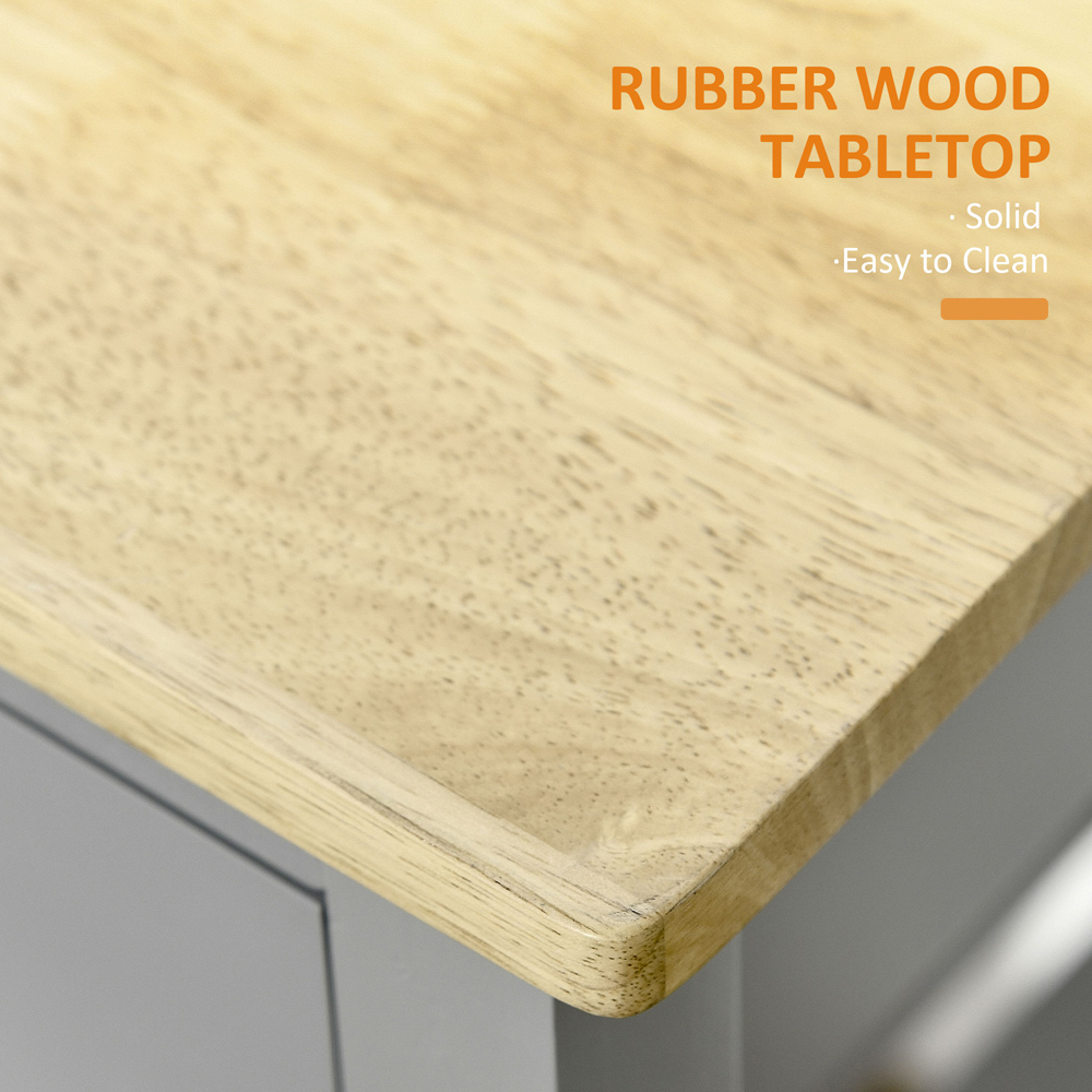 Add more space to your kitchen with the Portland 2 Shelf Single Drawer Grey Kitchen Trolley. This cabinet is designed with four wheels that make it easy to move around, and it features a drawer and two open shelves that provide plenty of storage space for all your food, crockery, and bottles. Plus, the towel rack on the side is the perfect spot to hang a dishcloth. With a solid rubberwood top, this cabinet is ideal for preparing your meals. Don't wait any longer – get your hands on this amazing island cabinet today and enjoy all its benefits.