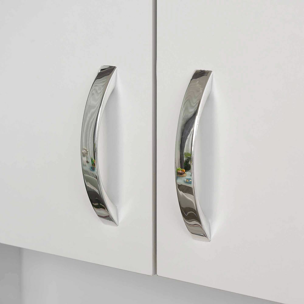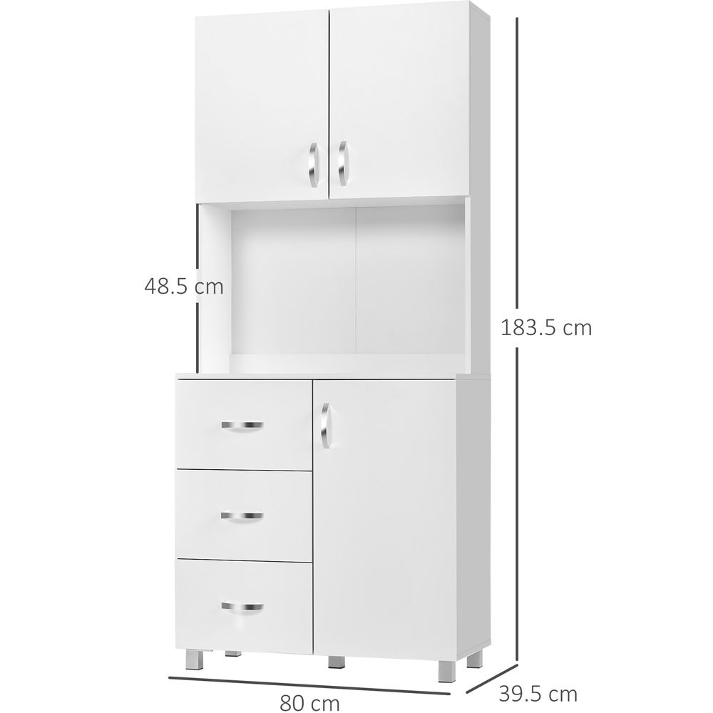 Add simple and stylish beauty into your home with Portland 3 Door 3 Drawer White Kitchen Cabinet. Made from particle board, the structure is solid and durable, featuring drawers, a cupboard and a large open compartment in the middle - giving you plenty of storage and holding room. A 3-level adjustable shelf sits inside each cupboard, allowing you to organise various items. The kitchen larder cupboard is finished with 4 legs for balance and polished handles for a sleek look.