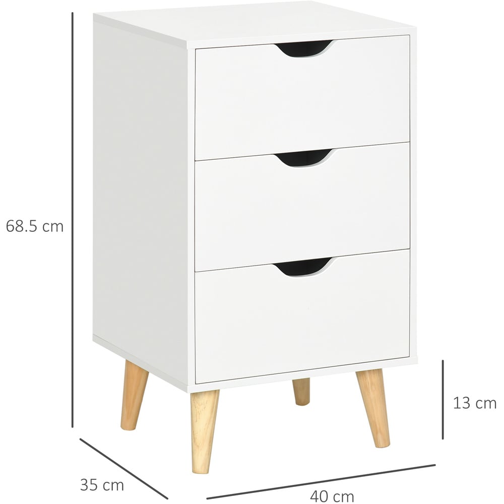 Create room for keeping your clothes and other bits organised with this Portland White 3 Drawer Bedroom Storage Cabinet. It features wooden legs for added support and groove handles to open and close each drawer easily. The flat tabletop provides extra room for storage and display.