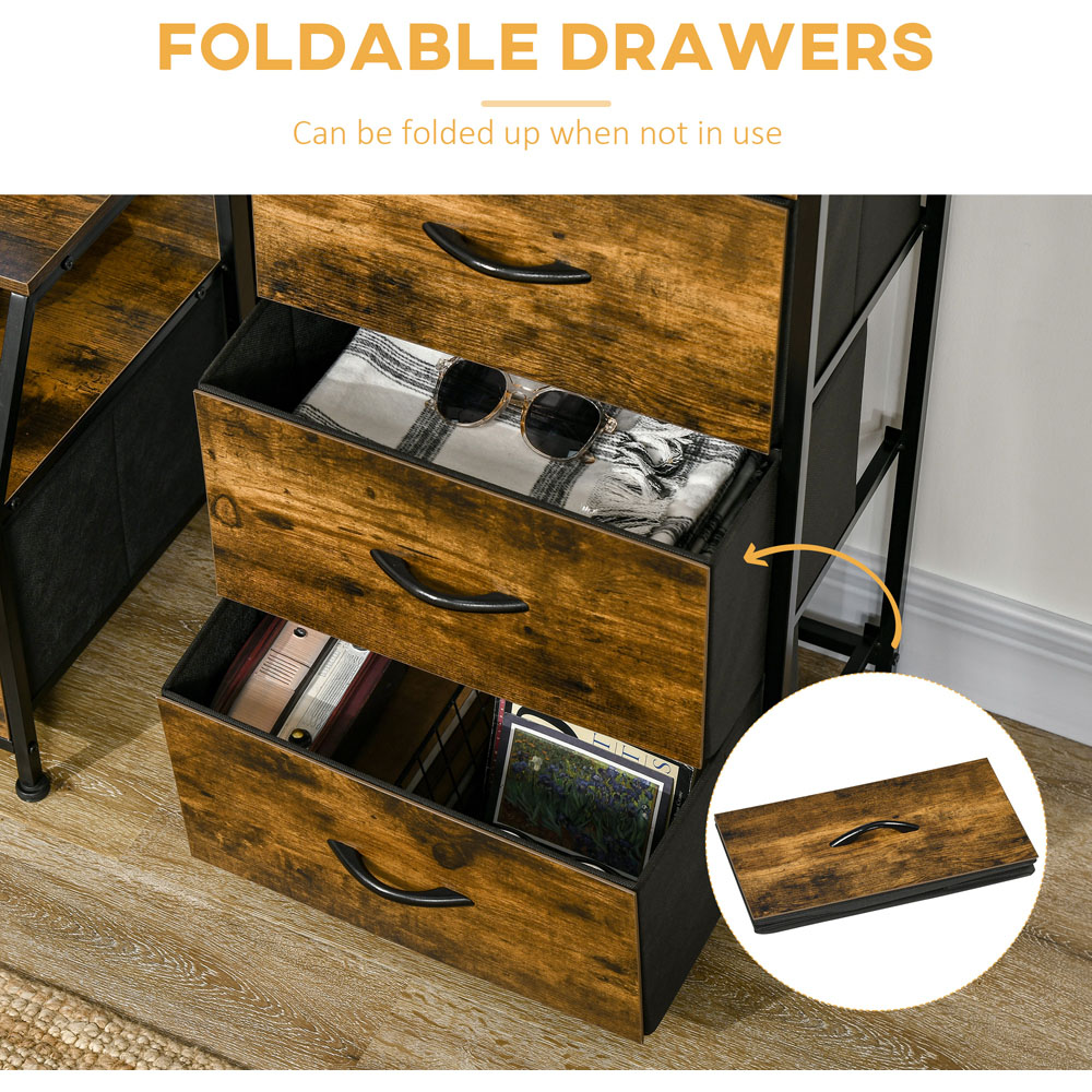 Add this stylish Portland 3 Drawers Rustic Brown Industrial Storage Cabinet to your space. It is made from a steel frame for a strong, and supportive structure, with durable MDF shelves making this piece suitable for everyday use. It comes with three large fabric drawers and the drawers are easily removable. Complete with handy adjustable feet.