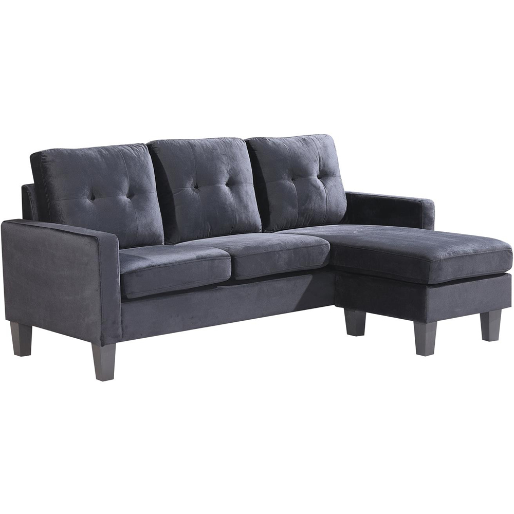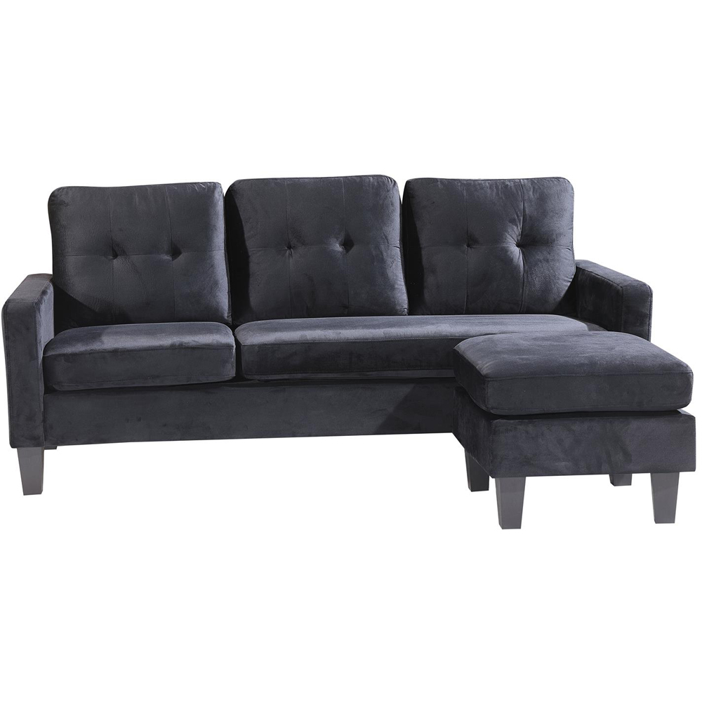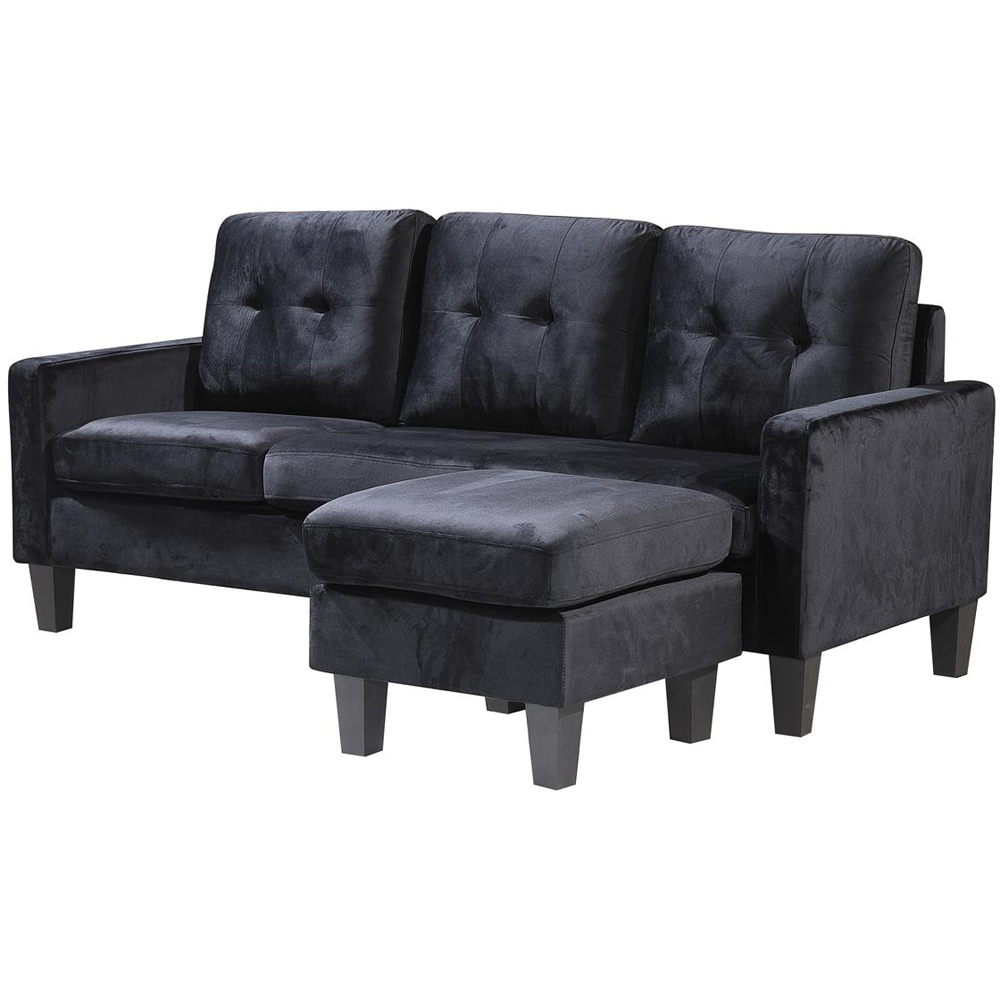 Bring flair and functionality to your home with this Portland 3 Seater Black Velvet L Shape Reversible Corner Sofa with Ottoman. This multipurpose sofa set includes a three-seat sofa, a movable ottoman and a reversible chaise lounge. It can be placed on the right or left side with the armchair as a separate sofa and ottoman. The material used in this sofa is black coloured velvet. Dimensions: Mount as recliner: H184 x W128 x L87 cm, Mount as sofa: H184 x W74 x L87 cm, Ottoman: H55 x W55 x L42 cm. This elegant and practical sofa with cushion can also be converted into an H184 x W128 cm recliner in a modern and classic style. It comes with easy-to-follow instructions, which ensures a perfect build, and the sofa sets up quickly and easily.
