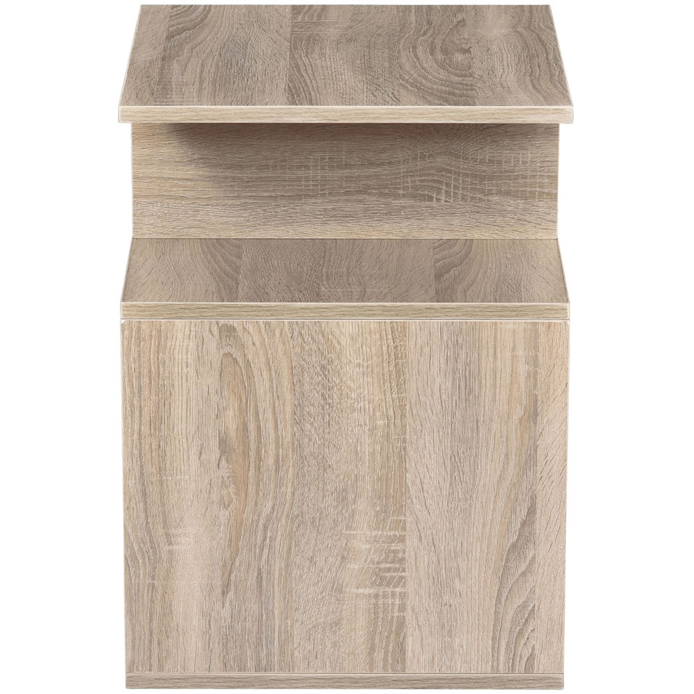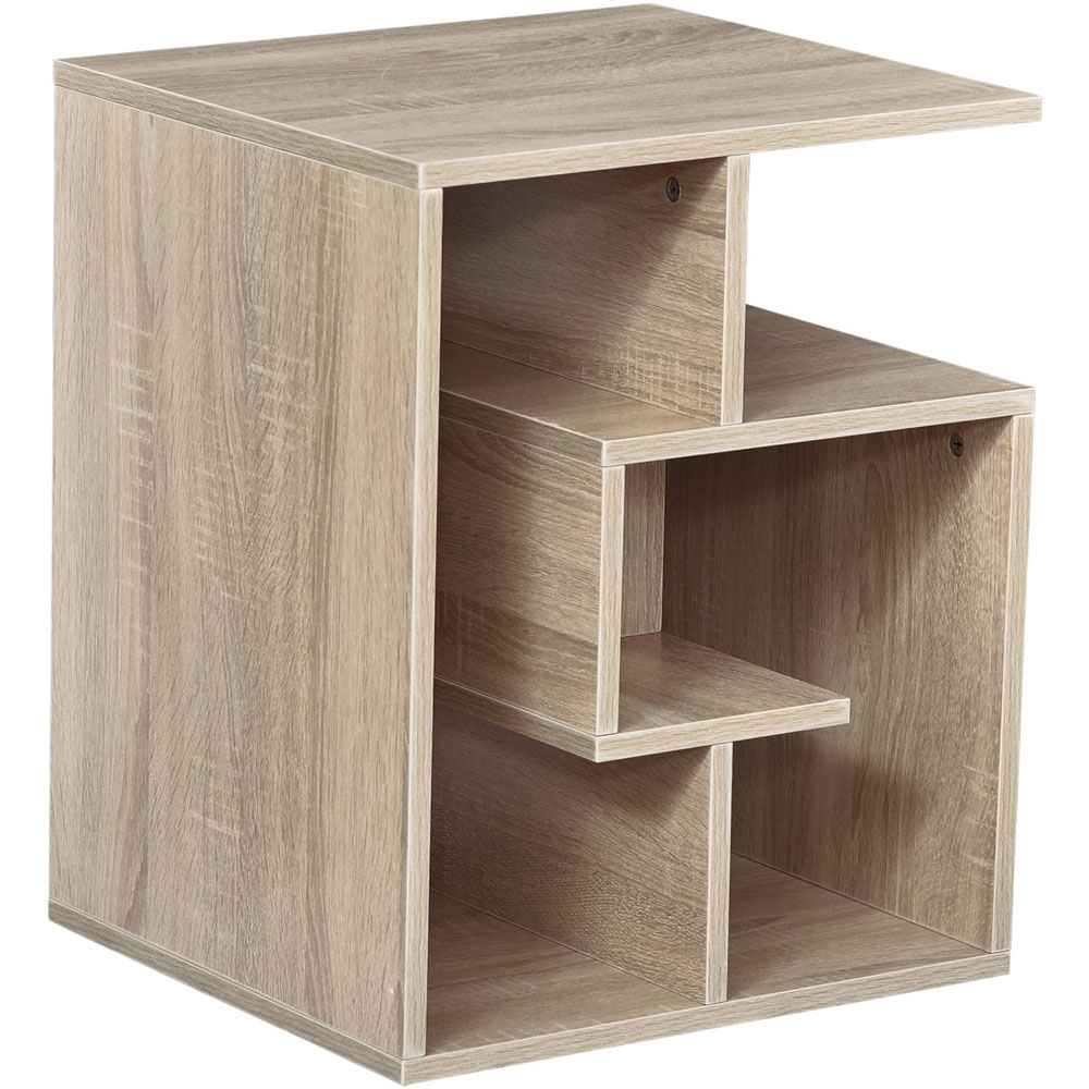 Enhance the style of your living space with this Portland 3 Tier Oak Side Table. The side table features a three-compartment cubic design. A unique take on a side table, it's cool and funky - a way to store and display differently this season. It's suitable for the home and office as a side table, nightstand, coffee table, magazine stand and much more. Made from particle board, the structure is suitable to be used every day. The smooth surface finish is easy to clean.