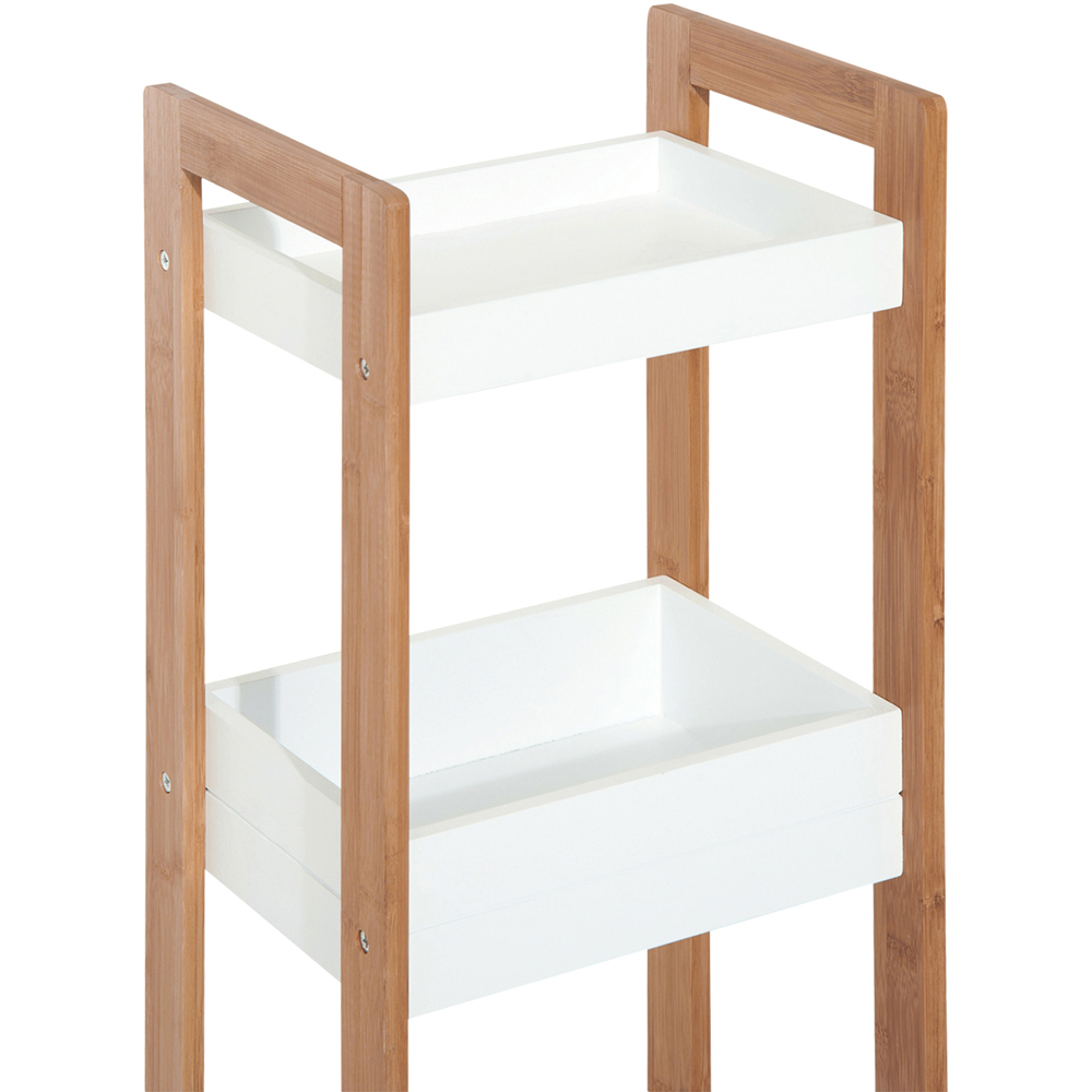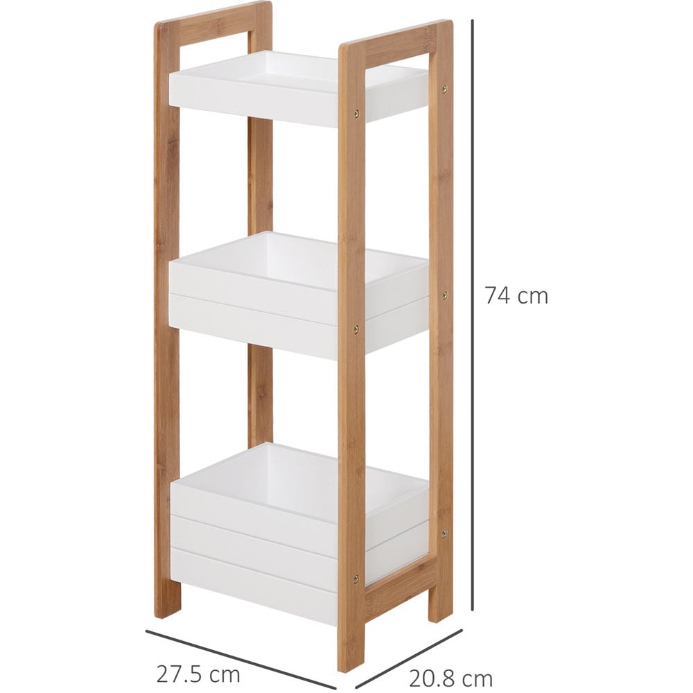 Transform your living space with this Portland 3 Shelf White Bathroom Storage Unit. Crafted from premium bamboo and MDF, this deluxe product offers unbeatable durability and longevity. With three spacious tiers, it provides ample storage space to suit any room in your home, be it the bathroom, living room, or kitchen. The product features a sleek and natural finish with rounded corners that make it safe for kids to use. Order now and enjoy a clutter-free home with this versatile storage unit.