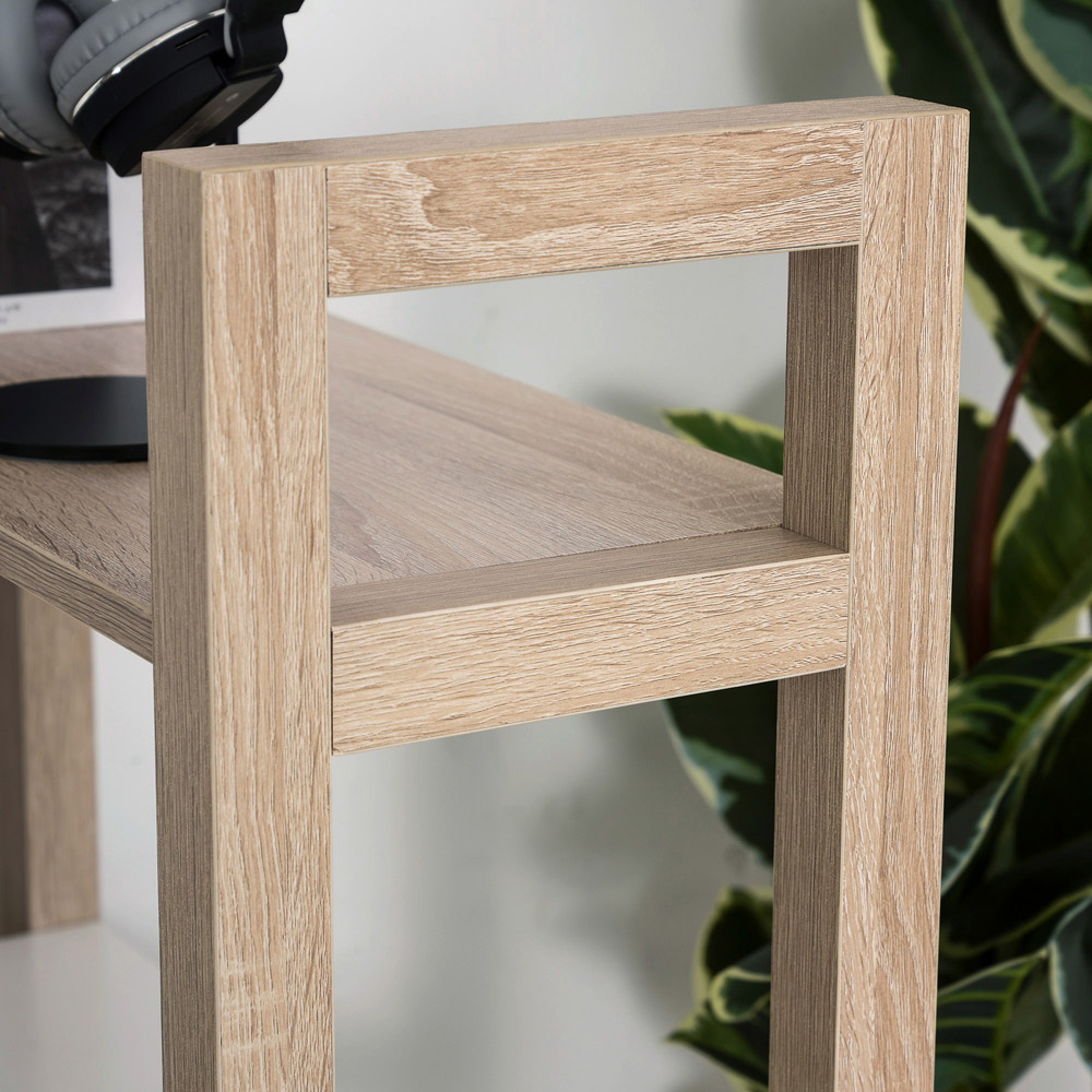 Let this desk with storage from Portland take hard work off your schedule. It's a duo design which gives you space to work and keep everything organised in one spot, fusing a study table with side shelves. The three shelves, fitted on the right side, give you lots of holding and display room for everything you need close by - whether it be folders, books and other office essentials. It's finished with anti-slip feet for floor protection and reinforced accents on the frame for extra strength.