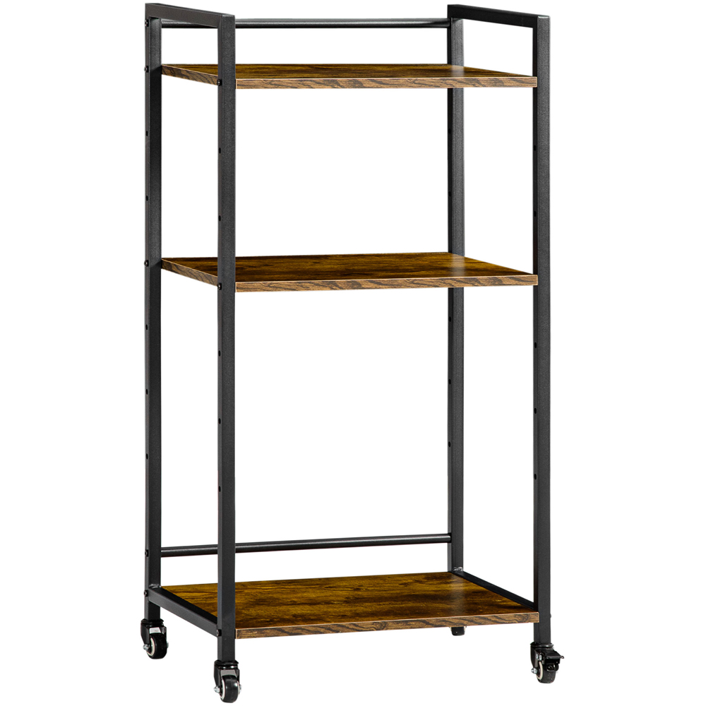 This Portland 3 Tier Rustic Brown Utility Cart with Adjustable Shelves is compact and ideal for small spaces needing a bit more storage. 3-tier shelf provides lots of space for supplies and accessories. Armed with pull handles for smooth moving. Easy-roll wheels allow you to move wherever it is needed most, and the wood-grain effect shelf is cool and trendy, great in modern or industrial office. The cart can also be used as a file cabinet, microwave stand, bar cart or kitchen trolley.