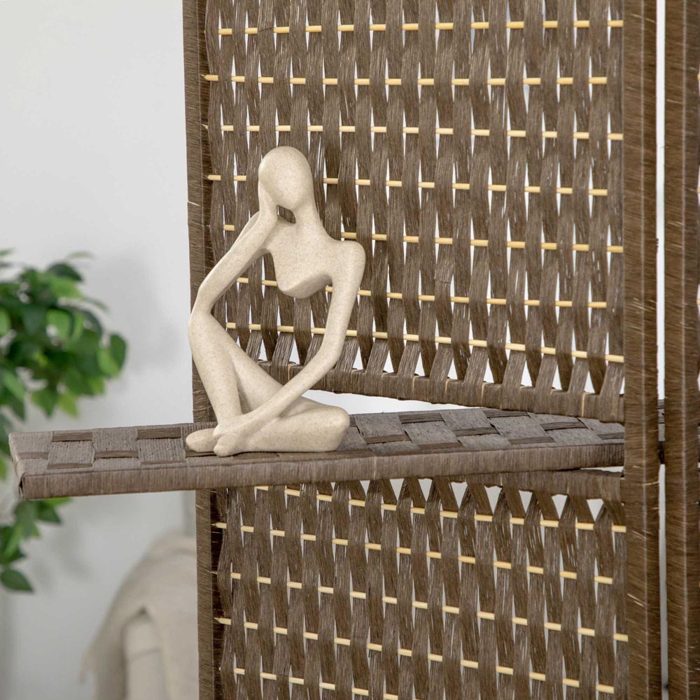 Portland 4 Panel Brown Folding Room Privacy Screen with Shelf 180 x 181cm