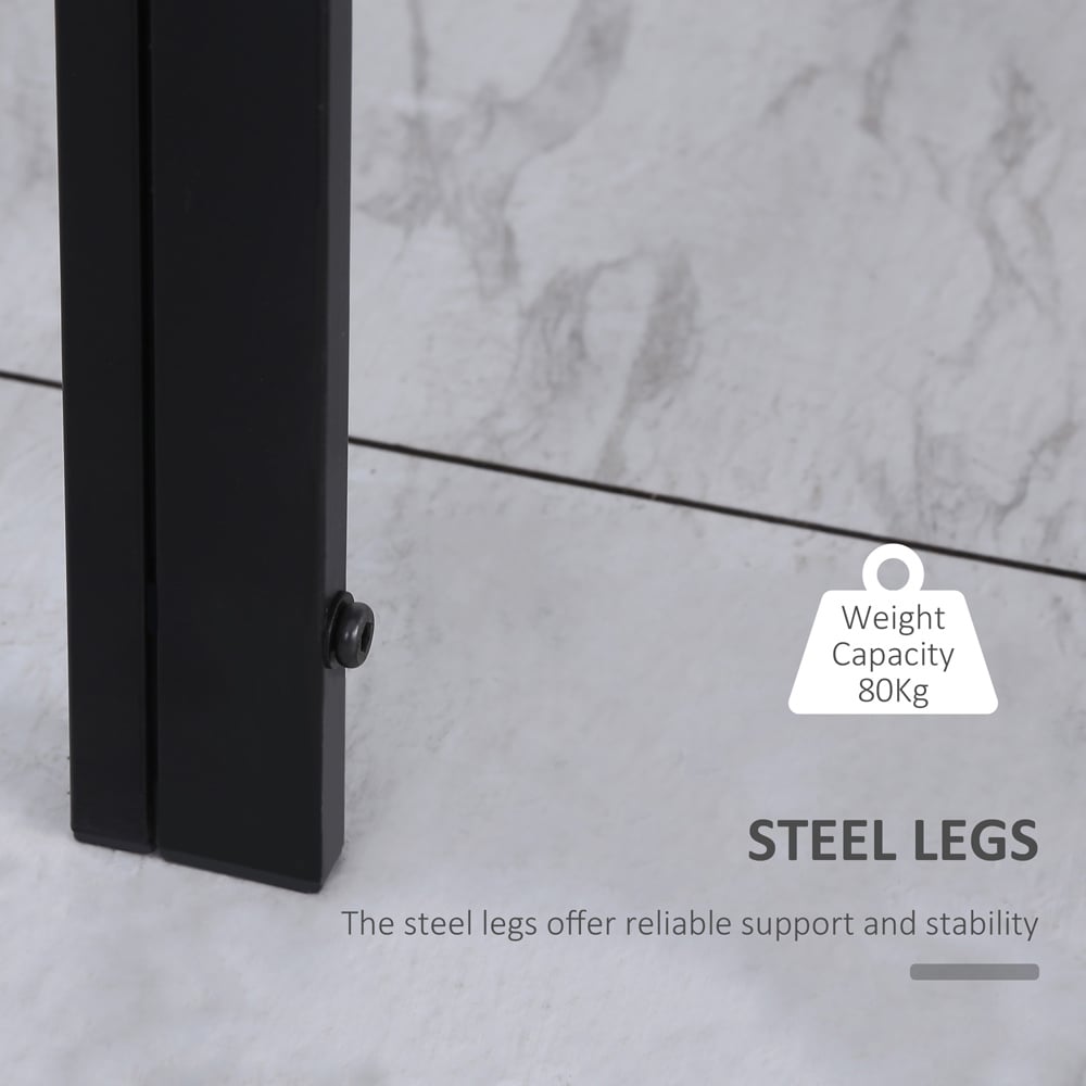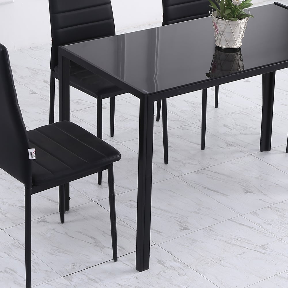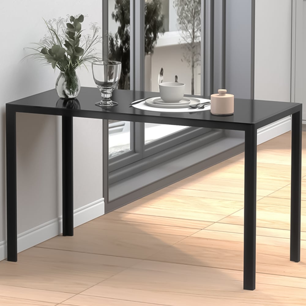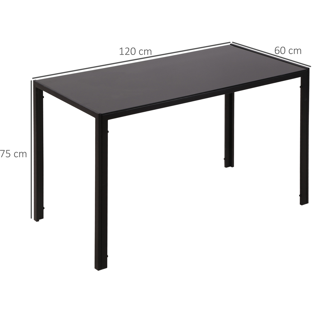 Modernise your dining space with the Portland 4 Seater Dining Table Black. Featuring a 6mm strong tempered glass top, it offers a sleek look and sturdy work or dining surface. The large size is ideal for hosting gatherings. Constructed with a tough steel frame and square-shaped legs for stability and furnished with plastic pads for floor protection, this table will make a contemporary and stylish addition to your space.