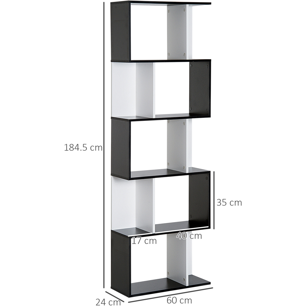 Tired of the same old look? Bring home this Interesting Portland 5-tier S Shaped Black Bookshelf. It has the unique and contemporary style of this S-shape. Five shelves of storage make it easy to display your favourite books, photos, collectables and more. Best of all, thanks to an open-back design, it doubles as a bookshelf and room divider.