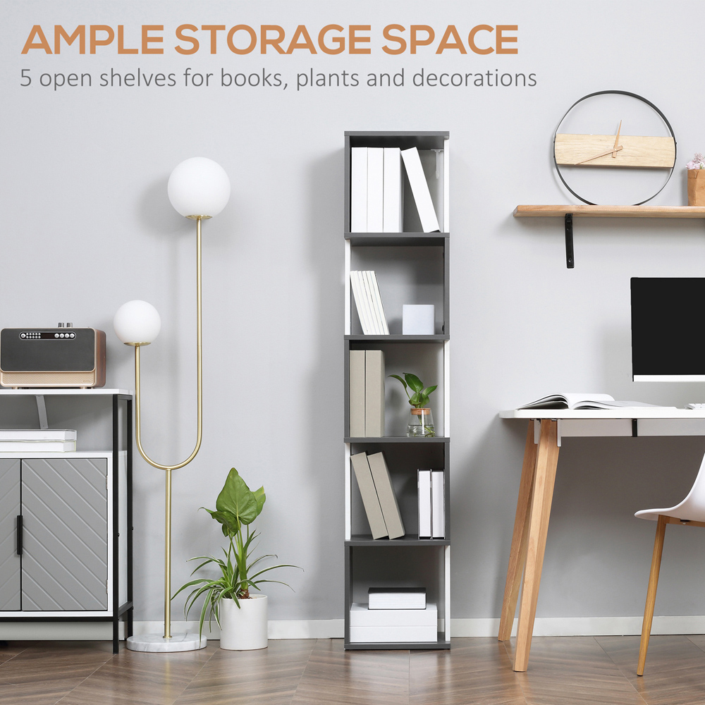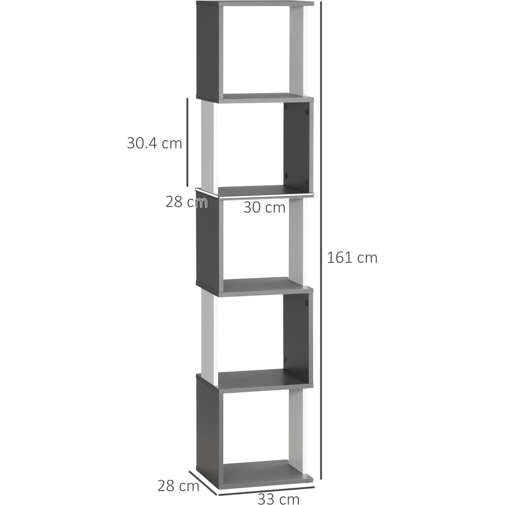 Upgrade your home decor with the Portland 5 Tier Freestanding White Bookcase. This functional unit is ideal for storing books and decorative items according to your preference. It is crafted using a sturdy particle board for durability and longevity. It features a unique 'S' shape design with five open shelves that offer decent storage space for your essentials. This bookcase features a sturdy base for stability and support.
