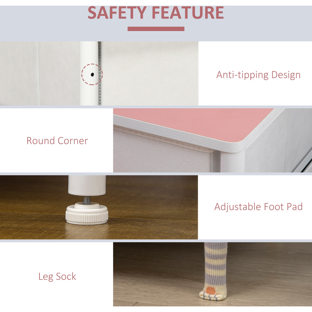 Create a convenient and effortless storage solution for your home with the Portland 6 Drawer Pink Chest of Drawers. With its six large fabric drawers, you'll have plenty of room to organise your belongings. The flat top also provides additional space for placing items. Made from non-woven fabrics, these storage drawers have a soft and inviting look. The fabric handles make it easy to pull out the drawers with ease. The anti-tipping design ensures stability on uneven floors, and the four-leg socks not only add visual interest but also protect your floors. This chest of drawers is a fantastic addition to any kid's room, bedroom, or hallway. The adorable pink colour and cute leg socks make this unit a focal point in any room.
