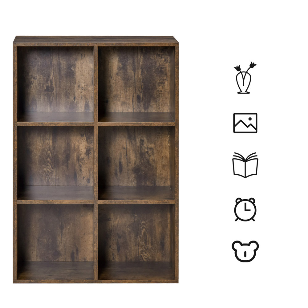 The elegant design of the Portland Cubic Study Shelving Unit is seamlessly compatible with any décor in your home, and its colour is natural yet elegant. For practical purposes, it features a three-tier six-cube cabinet, providing lots of space to store and organize your books or exhibits, and even to place pot plants. It is constructed of durable particleboard, combined with the anti-toppling device which makes it sturdy and durable! It is an ideal open cabinet for your bedroom, family room, or office, or as a bookcase for your child.