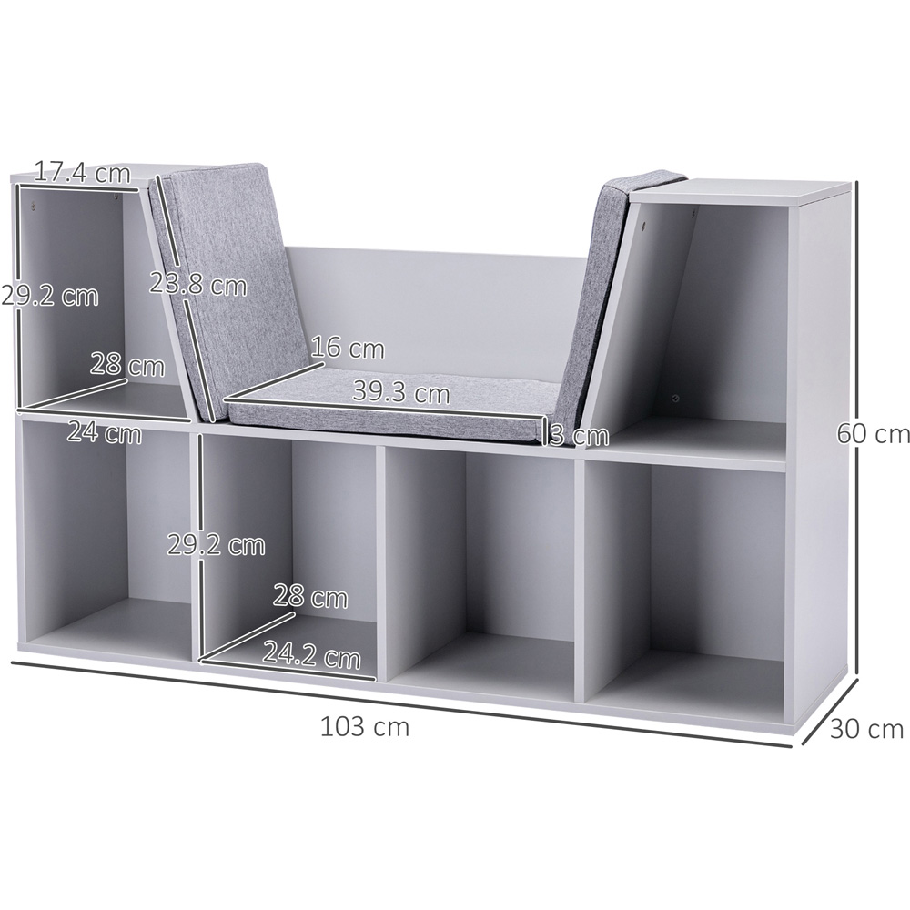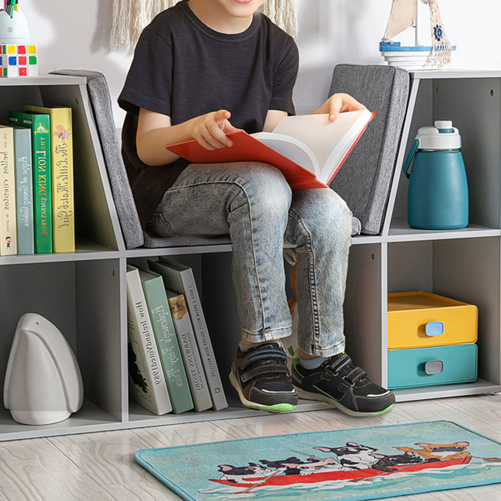 Teach your little one practical organising with this Portland Kids Grey Storage Cabinet. Featuring a stylish all-grey exterior, the unit easily blends in any room stylish. Compact and functional, your child can conveniently store a variety of items, from stuffed toys to books to video games in almost any room. Sturdy and safe, the unit is made with non-child-friendly MDF boards and melamine veneer for weather resistance. With a clean and decent look, the bookshelf chest coordinates with other items in any place in your home. The unit comes complete with six large compartments for sufficient storage space and a bookshelf seat with three cushions. Size: H60 x W103 x D30cm.