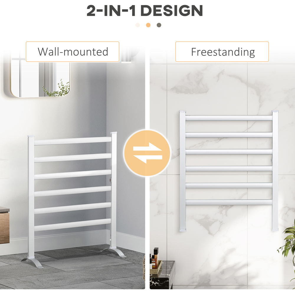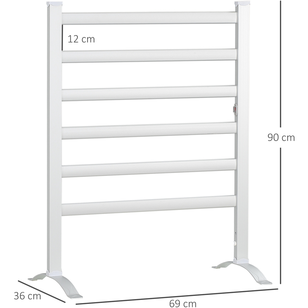 Keep your towels dry and warm with the Portland 850193V70 Silver Electric Towel Warmer. This electric towel rail warms towels and keeps them warm when you are ready. This warmer works best when towels are left to hang for long hours. This warmer is a freestanding unit with a wall-mountable design so you can set it up to wherever you want. It features six rails which provide plenty of space for warming with a sturdy aluminium structure. This heated towel rack is designed to gradually warm towels at temperatures between 45 °C to 55 °C over the course of a day. It also features an IPX4 rating which makes this warmer safe against splashes of water.