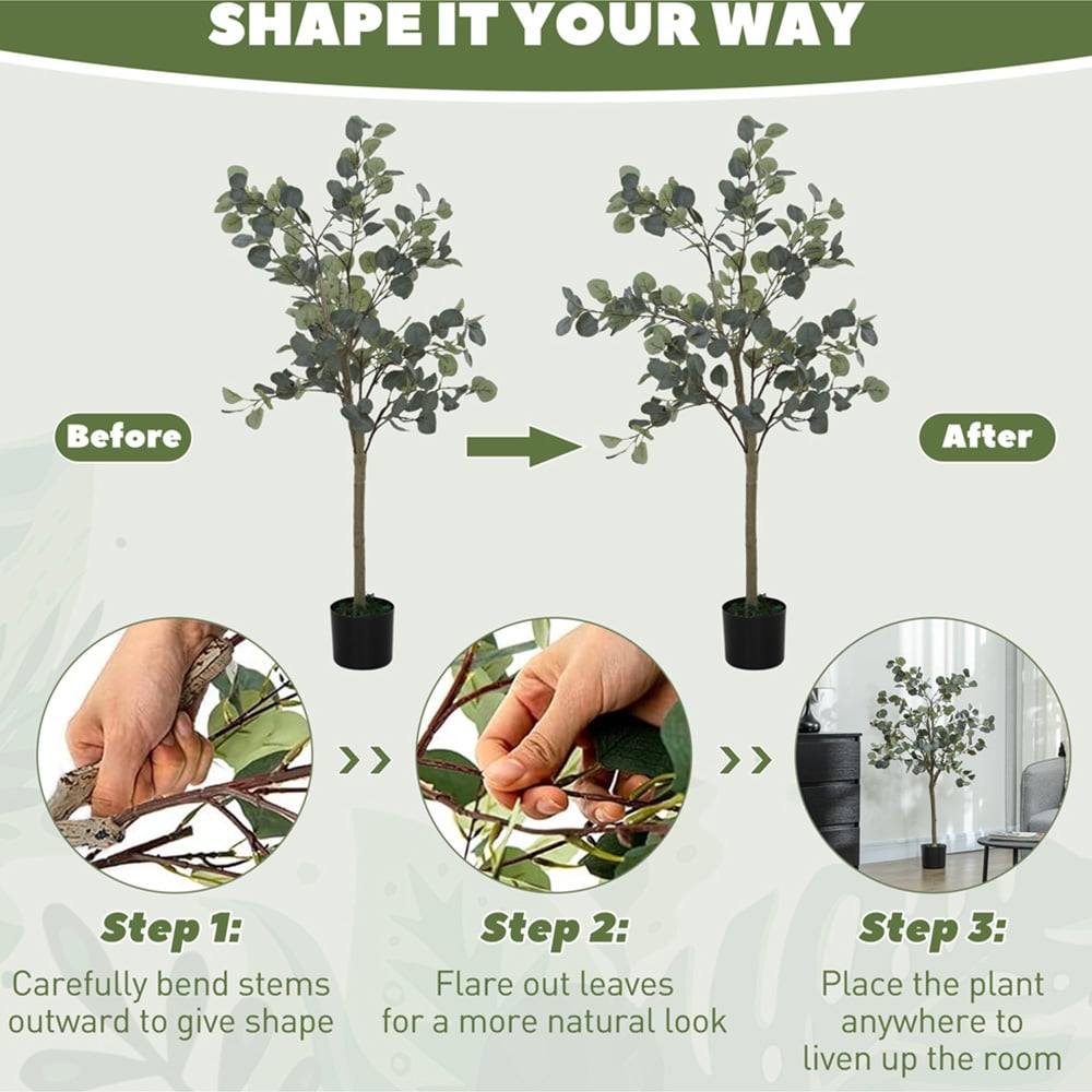 Transform your space with the Portland Artificial Plant, featuring 230 lush silver dollar leaves for a stunningly realistic look. The faux plant for indoors boasts silk leaves and lifelike trunks, complete with simulated moss, ensuring a fresh, verdant touch year-round, symbolising healing, renewal and resilience. Enjoy the beauty of an indoor plant without any upkeep—no watering or sunlight needed!