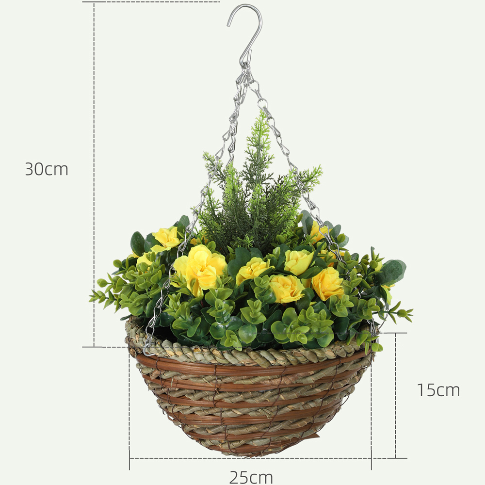 Dress up spaces in naturally colourful way, with no effort required-go for these Portland artificial lisianthus flower pots. The fake plants come in a set of two so you can create a matching look easily. Made from top quality plastic for long-term use and a realistic look and feel, each pot features 18 faux flowers and 72 leaves, giving it a beautiful voluptuous look. These plastic plants come with a wicker pot and a metal hook and chain, so you have everything you need in the package.