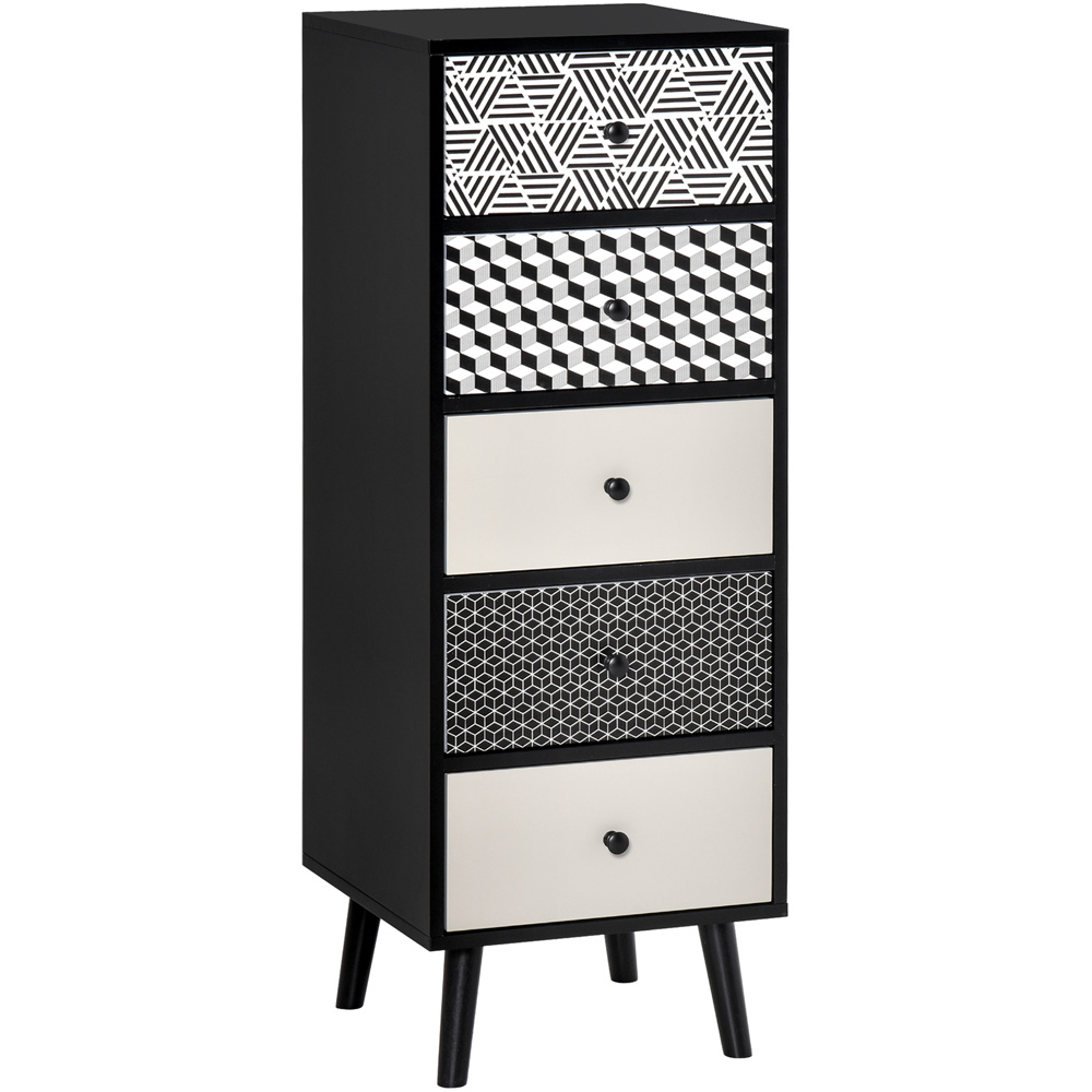 The Portland 5 Drawer Storage Cabinet provides enough storage space and categorize different items in a perfect way. Made of stable MDF board and four solid wood legs - this tall body chest of drawers can hold up to 40kg. The drawers come with geometric patterns for an extra dimension and character. It also comes with an anti-tipping strip at back for extra stability.