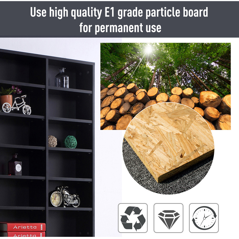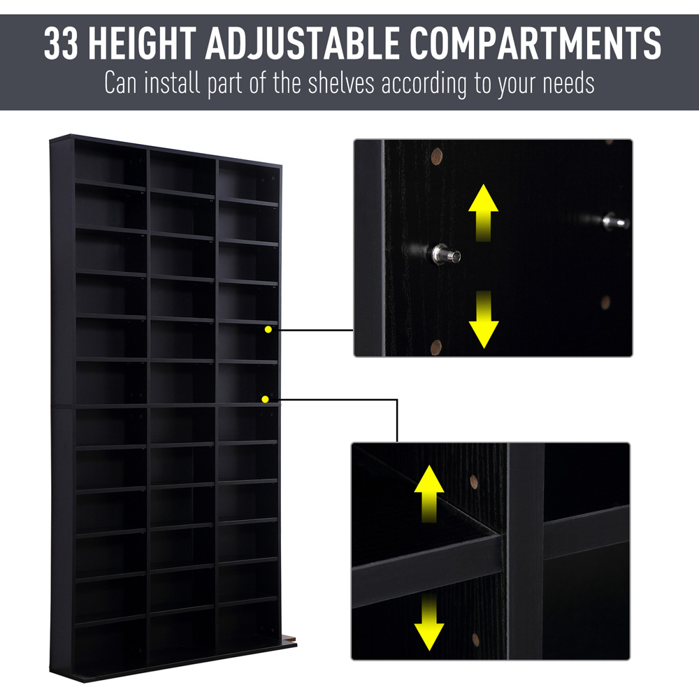 Organise your CDs, DVDs, books, and more with the Portland Black CD and DVD Storage Unit. With adjustable partition boards, you can customise the height to accommodate your storage needs. This modern and practical furniture piece will fit seamlessly into any room. It features 12 tiers of storage, making it perfect for CDs, DVDs, Blu-rays, video games, and other items. Whether in your home or office, this storage unit will provide ample space and create a tidy and coordinated look. The adjustable shelves can be moved up and down in three levels, allowing you to customise each compartment to suit your storage requirements. Please note that the intermediate shelf is not adjustable. Dimensions: 102 x 24 x 195cm.