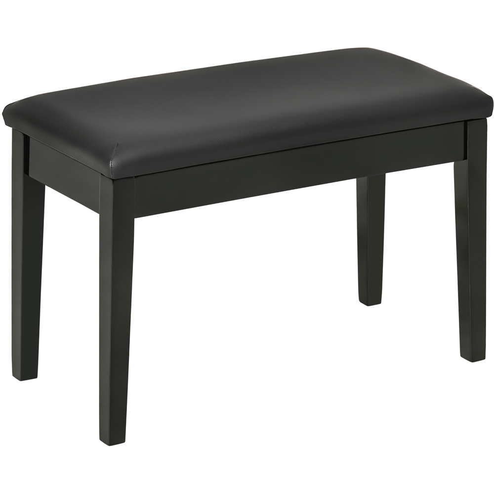 Add an elegant touch to your home decor with the Portland Black Classic Piano Bench. This bench can be used as a seating arrangement while playing piano or as an accent piece in a bedroom. It is upholstered using soft faux leather with a cosy padded seat for ultimate comfort. It features a flip-up seat with handy hidden storage, ideal for keeping music sheets and books. It also features a sleek pattern with sturdy feet for stability and support. This wooden frame bench with a padded top is ideal for all types of modern and traditional interior spaces.