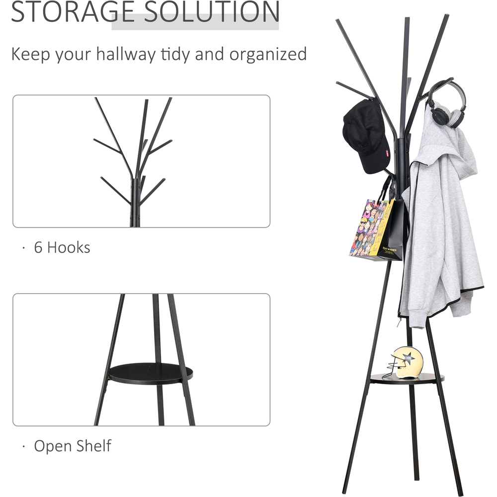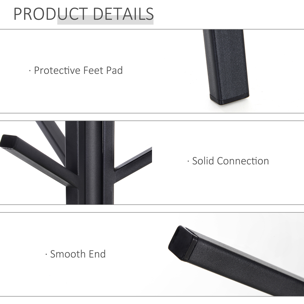 This functional coat rack from Portland is designed to handle your entire family's coats and other heavy garments including clothing accessories such as hats, scarves, and beanies. It combines a freestanding coat rack and a display stand in an easy to use unit. A compact and modern design helps you save in your hallway or entryway. What's more, you can place it in any corner, wherever you want such as the bedroom, garage, or office. It’s made from sturdy and strong steel metal with 9 hooks and a bottom shelf for all your belongings.