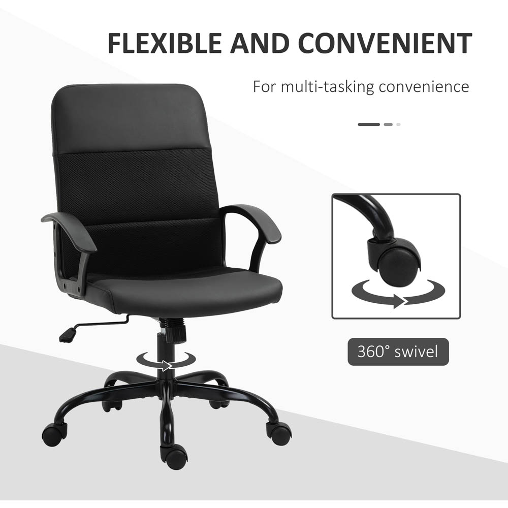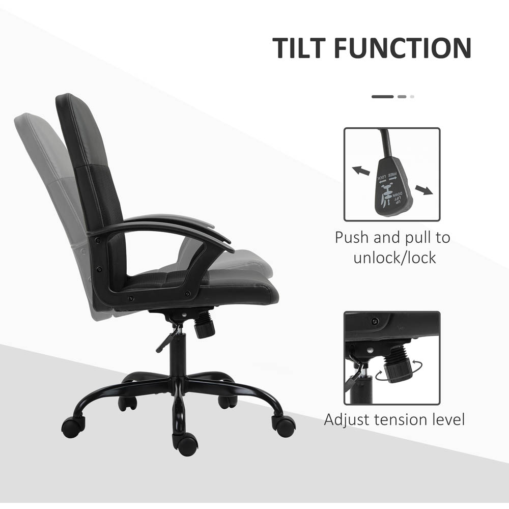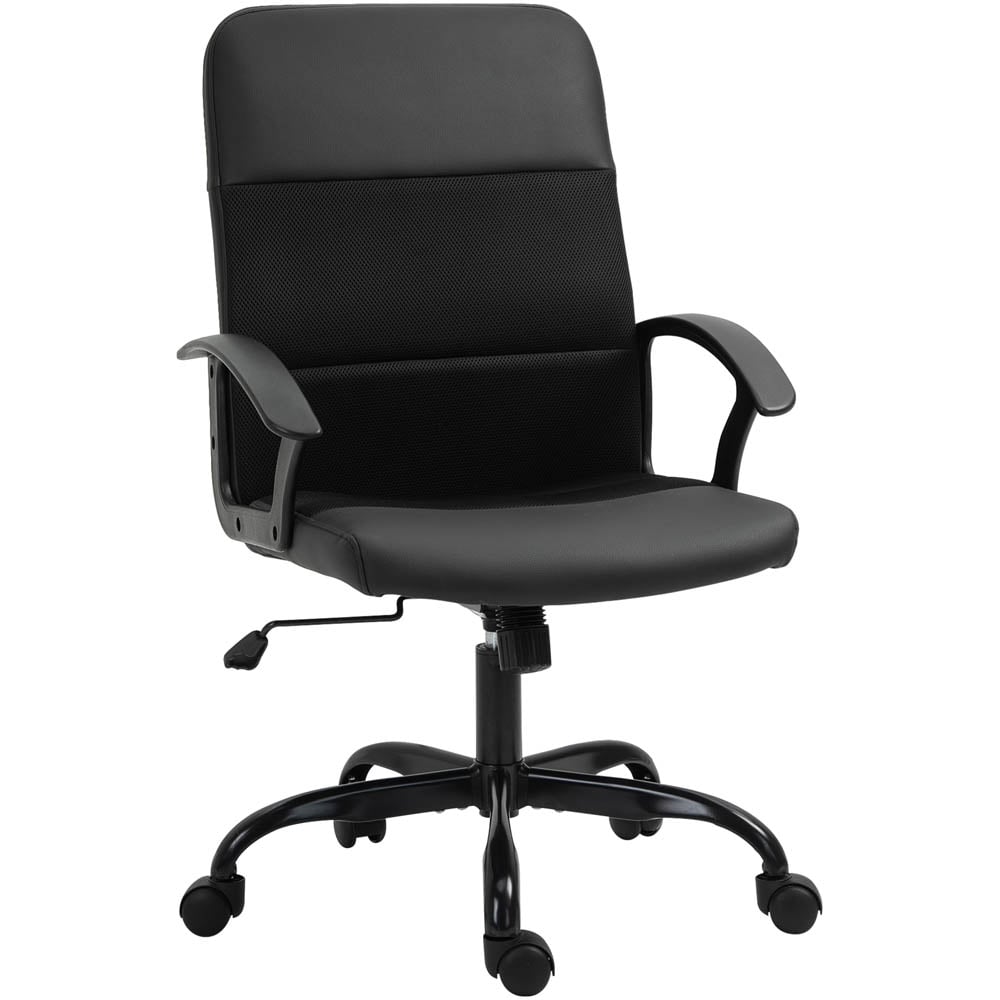 The Portland Black PVC Leather and Mesh Office Chair offers a stylish and comfortable seating option for your office space. With its faux leather top and bottom panels, along with a middle mesh in a unique boxy shape. This chair not only looks great but also provides a comfortable sitting experience. The chair's height is adjustable from 47 to 55cm, allowing you to find the perfect level that suits your needs and prevents any strain on your body. Additionally, the wide seat, high back, and fixed armrests ensure a comfortable sitting position for extended periods. The rocking range of the chair can also be adjusted, allowing for a gentle tilt when you lean back. Choose this office chair for a stylish and comfortable addition to your workspace.