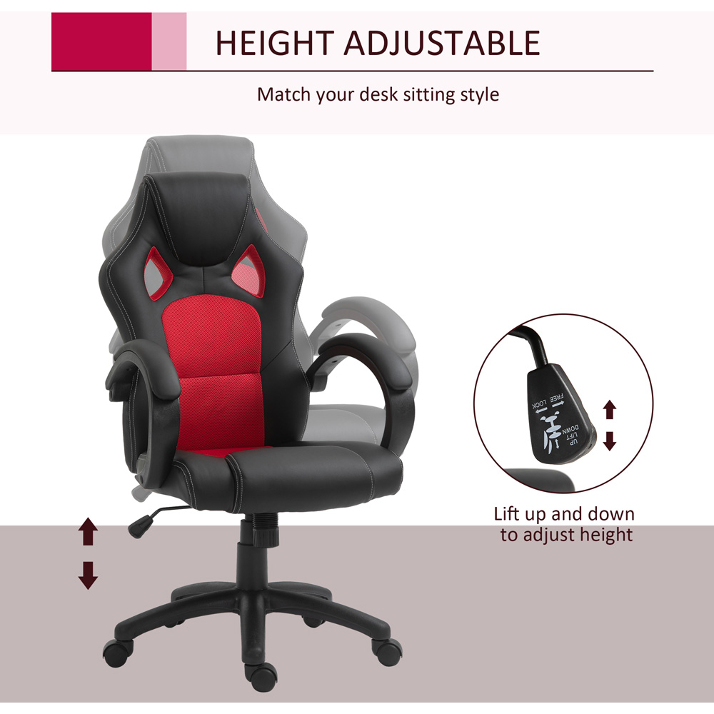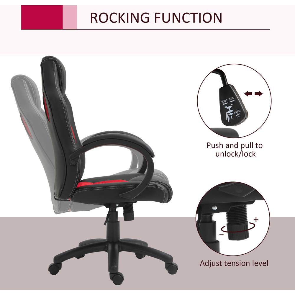 Invest in your comfort with the Portland Black and Red High Back Faux Leather Home Computer Desk Chair. It features a high back and headrest, as well as armrests to provide ample support during long work sessions. The chair is upholstered in smooth faux leather, giving it a sleek and modern look. Additionally, the chair is height-adjustable, making it suitable for use with different-sized tables and desks. The 360° swivel seat allows for easy movement, and the back also tilts for extra relaxation. The chair is also filled with sponge padding, ensuring maximum comfort throughout the day.