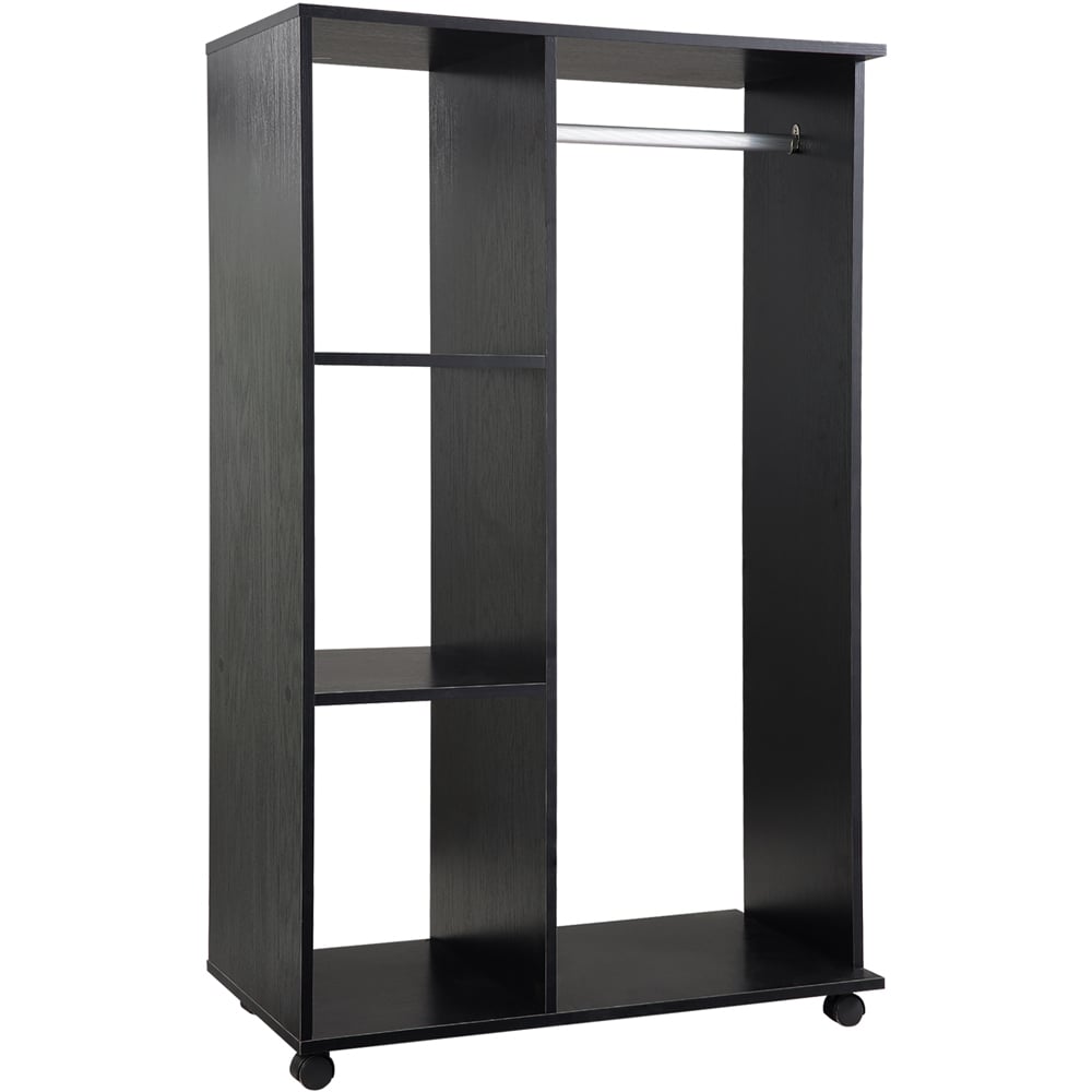 This high quality mobile open wardrobe from Portland is perfect for storing your clothes and keep it organized. It comes complete with a hanging shelf and three cubbies, offering sufficient space to meet all storage needs. The wheels under the wardrobe enable you to move with ease to where you need it to be. An airy approach to keeping all your clothing stored, keeping them smelling fresh. Great for homes and bedrooms short on space. A long hanging area with a strong aluminium rod on the side, with three open shelves on the other side – providing plenty of space for keeping all your clothes tidy and organised. It has strong and robust particle board frame with a melamine top coat for a smooth and easy-clean finish. The four wheels allows you to move wardrobe around easily, two of which are lockable to keep in place when needed.