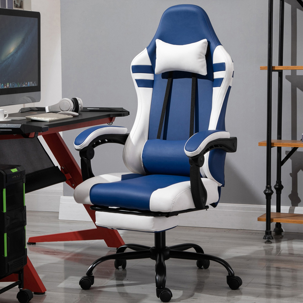 TTAP Monaco Black and Blue Faux Leather Swivel Gaming Chair